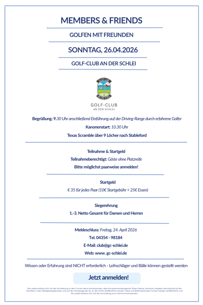 AUSGEZEICHNET Basierend auf 150 Bewertungen Gepostet auf SandraTrustindex überprüft, ob die Originalquelle der Bewertung Google ist. Toller sehr anspruchsvoller Platz. Hier kann man auch mal den Driver voll ausholen... Bis zum nächsten Mal!Gepostet auf Daniela KellerTrustindex überprüft, ob die Originalquelle der Bewertung Google ist. Wir haben diesen Golfplatz , dank DeinGolfPlus , dieses Jahr schon 4 mal gespielt. Ein sehr gepflegter Platz, Blick auf die Schlei inklusive. Immer ein sehr netter Empfang im Sekretariat und eine richtig tolle Gastronomie mit sehr leckerem Essen. Wir kommen garantiert nächstes Jahr wieder. Vor allem die Wiese für Womos mit Blick auf die Bahn 15 hat es uns angetan.Gepostet auf Sascha HülleTrustindex überprüft, ob die Originalquelle der Bewertung Google ist. Gepostet auf Dieter MikolajczakTrustindex überprüft, ob die Originalquelle der Bewertung Google ist. Wir haben diesen Platz auf der Durchreise als Gäste gespielt und wurden sehr freundlich empfangen. Das Fairway wie auch die Grüns sind in einem tadellosen Zustand. Eventuell ist hier ein Cart empfehlenswert, da das Gelände teilweise sehr hügelig ist. Nach der Runde waren wir im Restaurant eingekehrt und haben dort köstlich gegessen. Wenn wir wieder mal in der Nähe sind, werden wir sehr gerne hier wieder spielen. Mit dem Wohnmobil steht man ebenfalls sehr ruhig und unkompliziert, allerdings ohne Strom. Vielen Dank für diesen schönen Tag!Gepostet auf Michael JanowskiTrustindex überprüft, ob die Originalquelle der Bewertung Google ist. Ein anspruchsvoller, hügeliger und top gepflegter Platz. Wir waren als Greenfeespieler dort. Netter Empfang, gute Beratung und alles wurde erklärt. Unser Golfhund Herr Kiwi durfte auch mit auf die Runde. Anschließend haben wir auf der schönen Terrasse gegessen. Gute Gastronomie. Sehr lecker. Ein wunderbarer Golftag.Gepostet auf Sitting BullTrustindex überprüft, ob die Originalquelle der Bewertung Google ist. Sehr freundlicher Service, toller Golfplatz mit Sicht auf die Schlei.Gepostet auf Hansg GeTrustindex überprüft, ob die Originalquelle der Bewertung Google ist. Gepostet auf Charlotte Brinkmann-ThomsenTrustindex überprüft, ob die Originalquelle der Bewertung Google ist. Gepostet auf Heiner StoltenbergTrustindex überprüft, ob die Originalquelle der Bewertung Google ist. Gepflegte Anlage, gute KücheGepostet auf Alexander StormfjellTrustindex überprüft, ob die Originalquelle der Bewertung Google ist. Tolles Ambiente, schöner Platz, toller Kuchen Loch 19