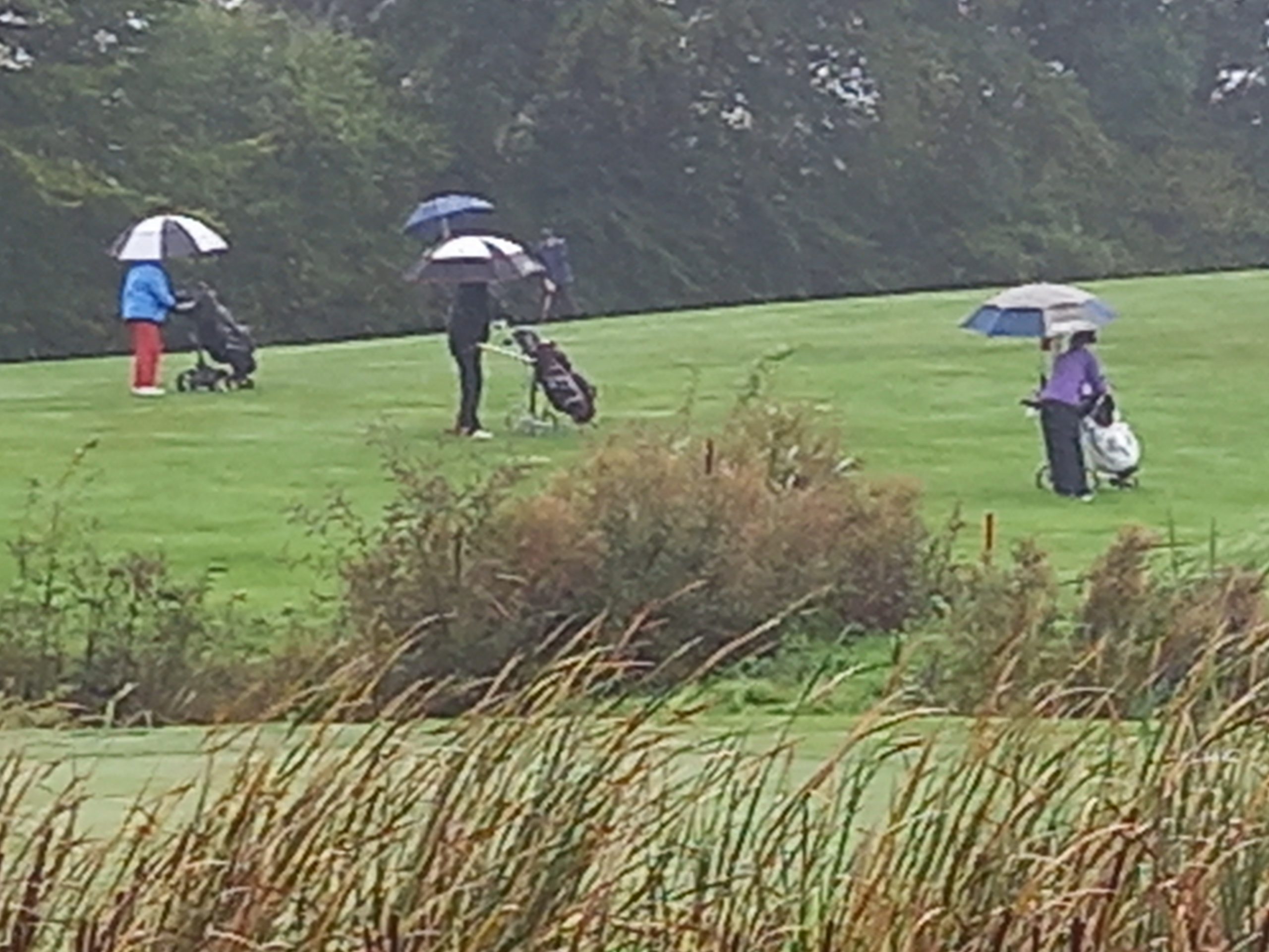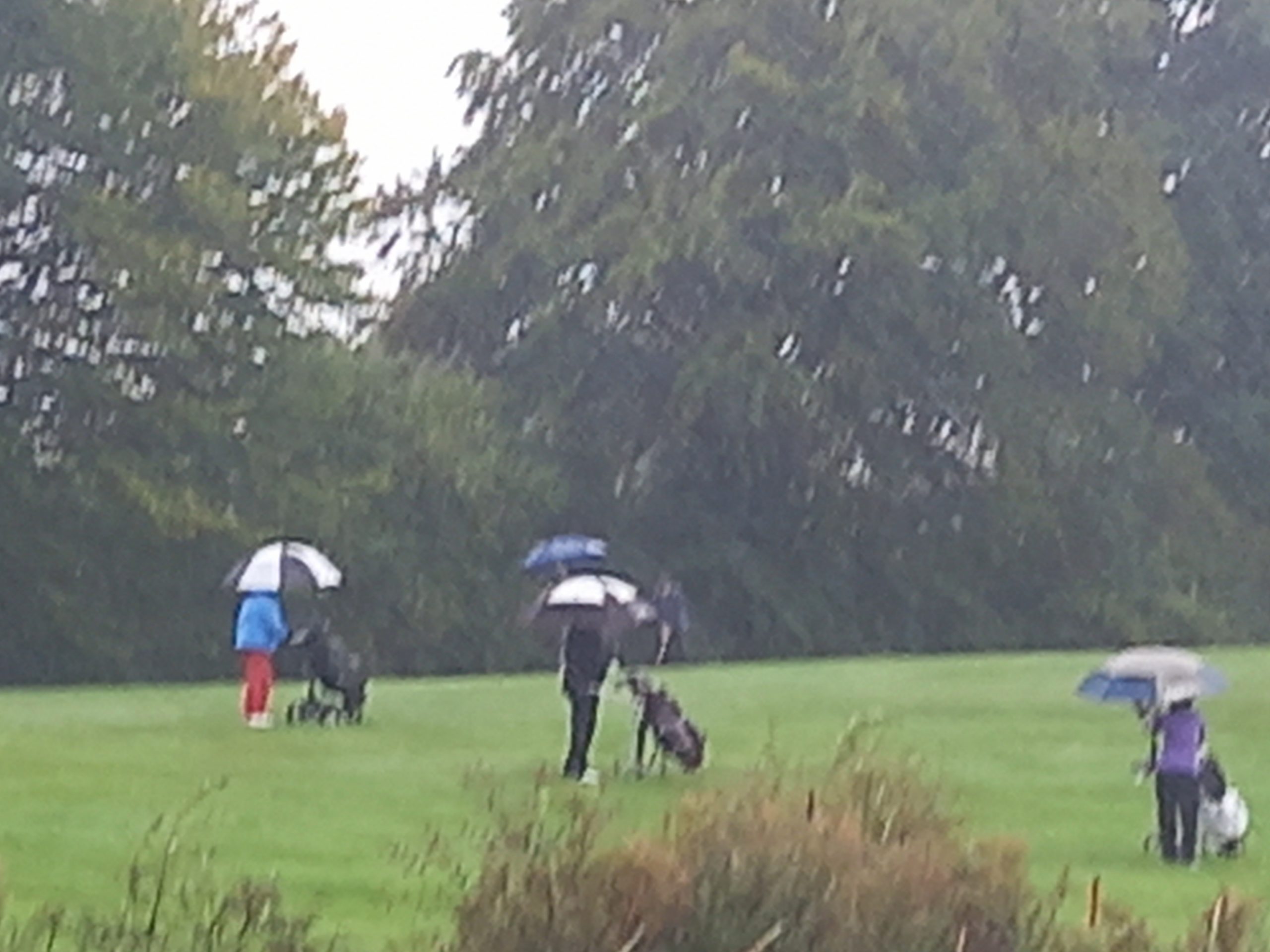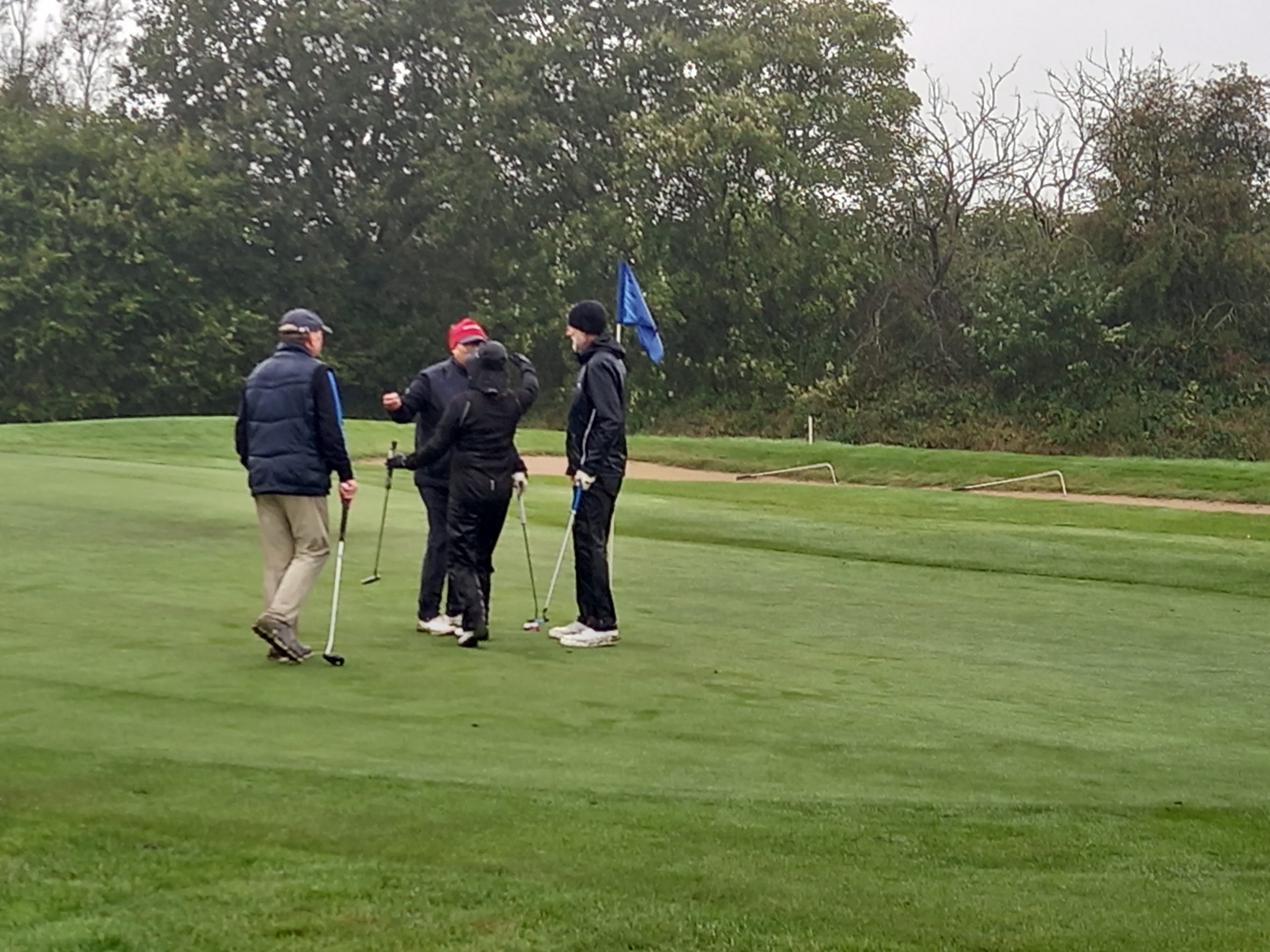 Doch der Wettergott meinte es nicht gut mit den Schleimöwen. Pünktlich zum ersten Abschlag an Tee 1 setzte der berüchtigte „Schietwetter“-Modus ein. Zunächst noch erträglich, verwandelte sich der anfängliche Nieselregen schnell in anhaltenden Dauerregen. Die kühlen Temperaturen und der aufkommende Wind taten ihr Übriges und machten die äußeren Bedingungen zunehmend schwieriger. Die Golferinnen und Golfer kämpften sich durch den Regen, doch nach 9 Löchern war der Entschluss gefasst: Das Turnier würde verkürzt werden.