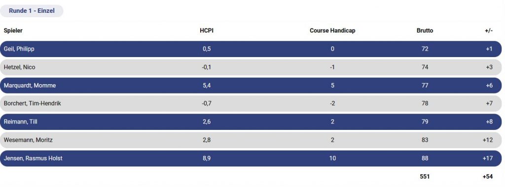 Besondere Anerkennung verdiente sich auch der Youngster Momme Marquardt. In seiner erst zweiten Partie auf diesem Niveau zeigte er keinerlei Nervosität. Nach einem Triple-Bogey an Bahn 7 beendete er die ersten neun Löcher mit zwei über Par. Die zweiten neun spielte er solide und brachte 77 Schläge ins Clubhaus – ein beeindruckendes Ergebnis für den Nachwuchsspieler.