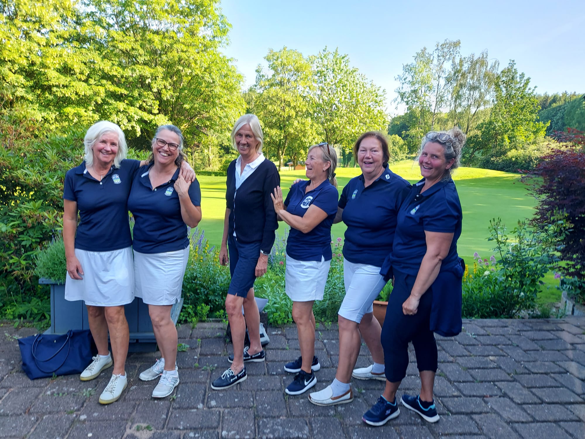 Die erste Mannschaft der AK 50 Damen zeigte eine beeindruckende Leistung bei ihrem Auswärtsspiel im GC Hof Berg. Mette Jensen und Petra Massolle spielten jeweils 94 Schläge und lagen damit auf Platz 2 der Tagesergebnisse. Harriet Bersch, Stephanie Zilch und Michaela Nehlsen komplettierten die geschlossene Mannschaftsleistung mit jeweils 97 Schlägen. Mit insgesamt 479 Schlägen sicherte sich die Mannschaft den Tagessieg und verkürzte den Rückstand auf den führenden Husumer GC auf nur noch 2 Schläge.