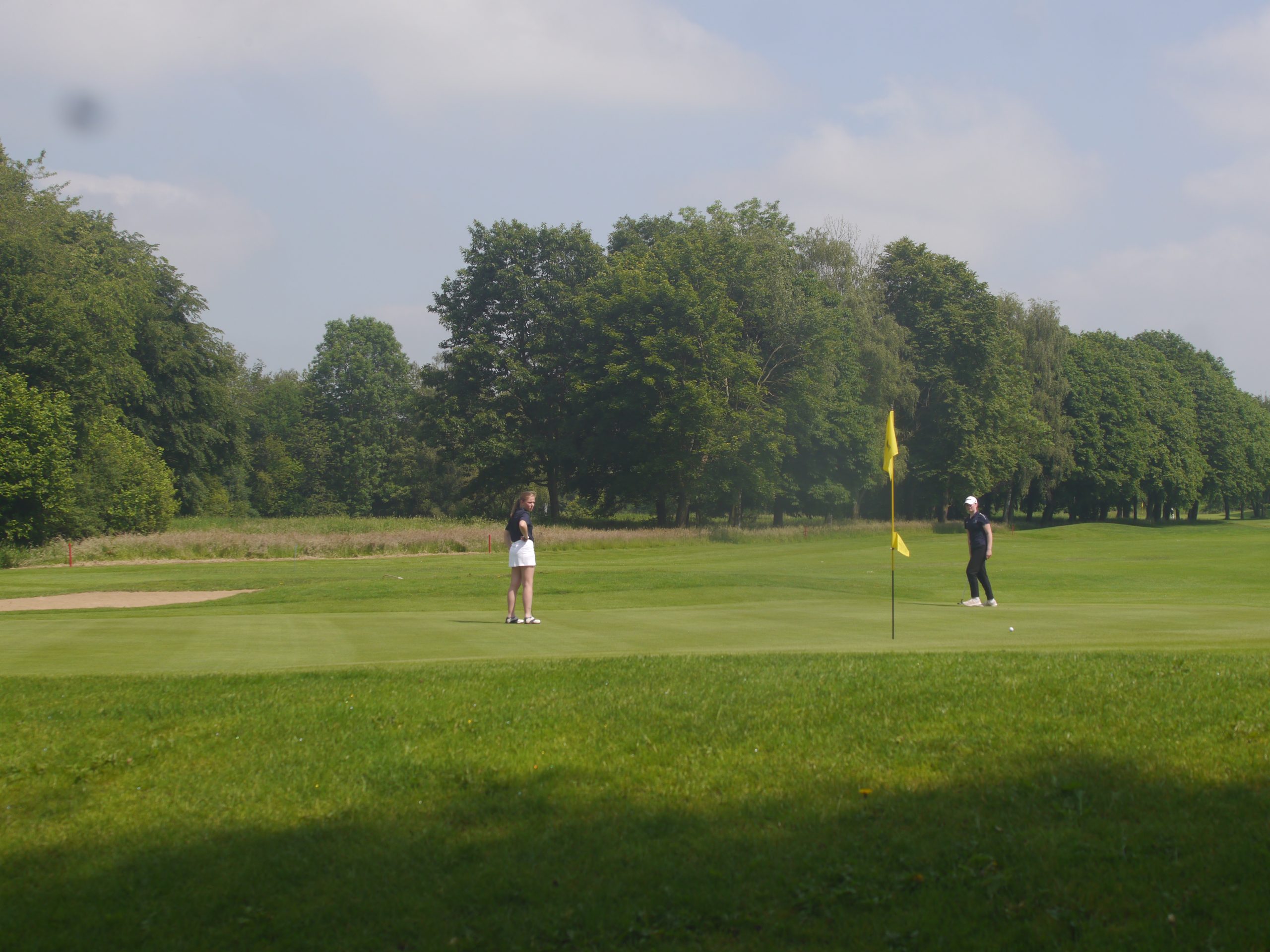 Die gemischte Jugendmannschaft der Altersklasse 16 gastierte im Golfclub an der Pinnau. Für alle Spieler war es der erste Besuch auf der Anlage nahe Quickborn, was die Herausforderung noch größer machte. Aufgrund einer kurzfristigen Absage trat das Team nur mit drei Mitgliedern an, was die Ausgangslage zusätzlich erschwerte.