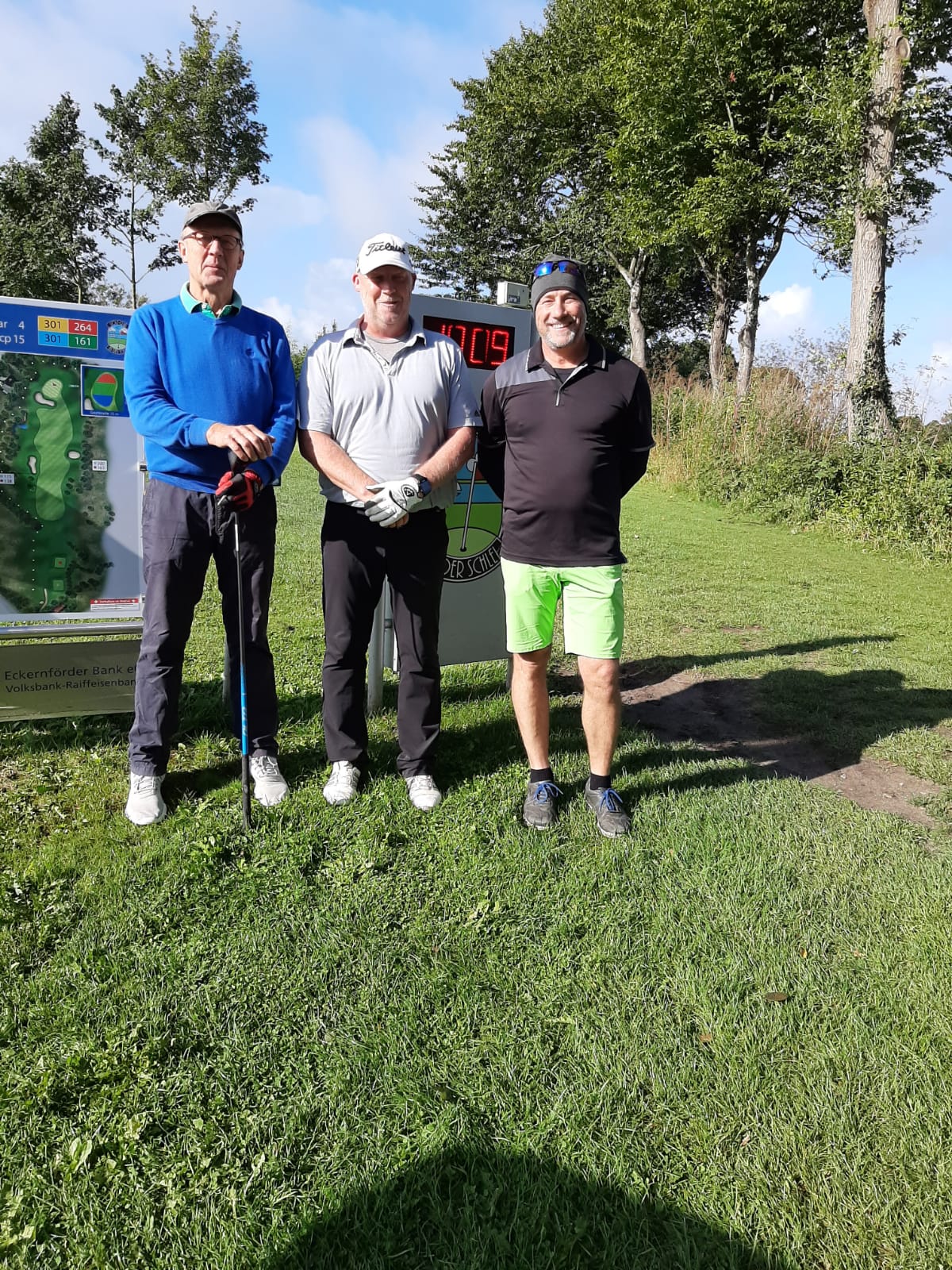 Die Senioren spielten ebenfalls 18 Löcher. Thomas Kallinich brachte eine 85 ins Clubhaus und übernahm klar die Führung. Walter Gerhard mit 89 und Bart Westerkamp mit 90 Schlägen folgen ihm aber immer noch in Reichweite. Die Vorfreude auf den Dreikampf am Sonntag war groß, vielleicht konnte einer der Herren dahinter auch noch in den Kampf um den Sieg eingreifen.