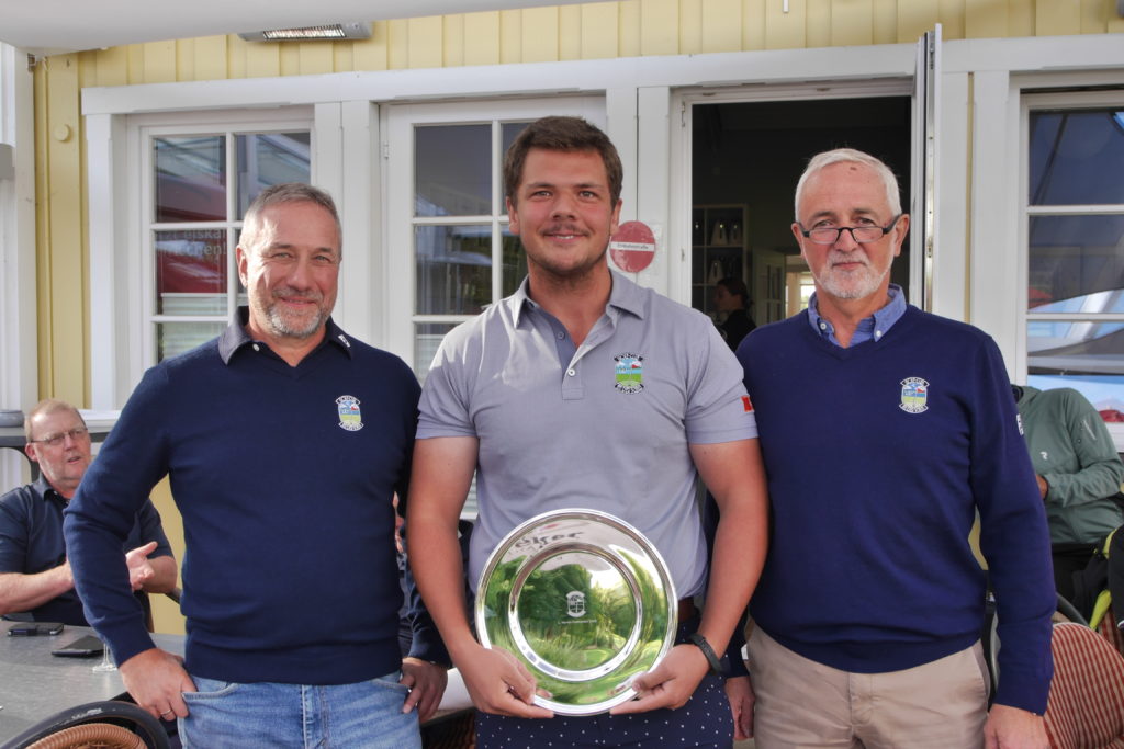 Der lachende Dritte….so oder so ähnlich könnte sich Nico Hetzel an diesem Sonntag gefühlt haben. Lag er noch nach den ersten beiden Runden mit Tim-Hendrik Borchert und Philipp Geil zusammen fast hoffnungslos auf dem 3. Platz, so präsentierte er sich am Sonntag wieder einmal in Galaform. Trotz unbeständigem Wetter konnte er unseren Platz wieder einmal Par spielen. Dies gelang am Sonntag weder  Linus Neumann (77/72/80), der mit 80 Schlägen deutlich mehr brauchte als die anderen. Aber auch Tim-Hendrik Borchert (77/77/76) und Philipp Geil (78/75/75) konnten mit ihren 76 bzw. 75 Schlägen den neuen Clubmeister Nico Hetzel nicht mehr von Platz 1 verdrängen.