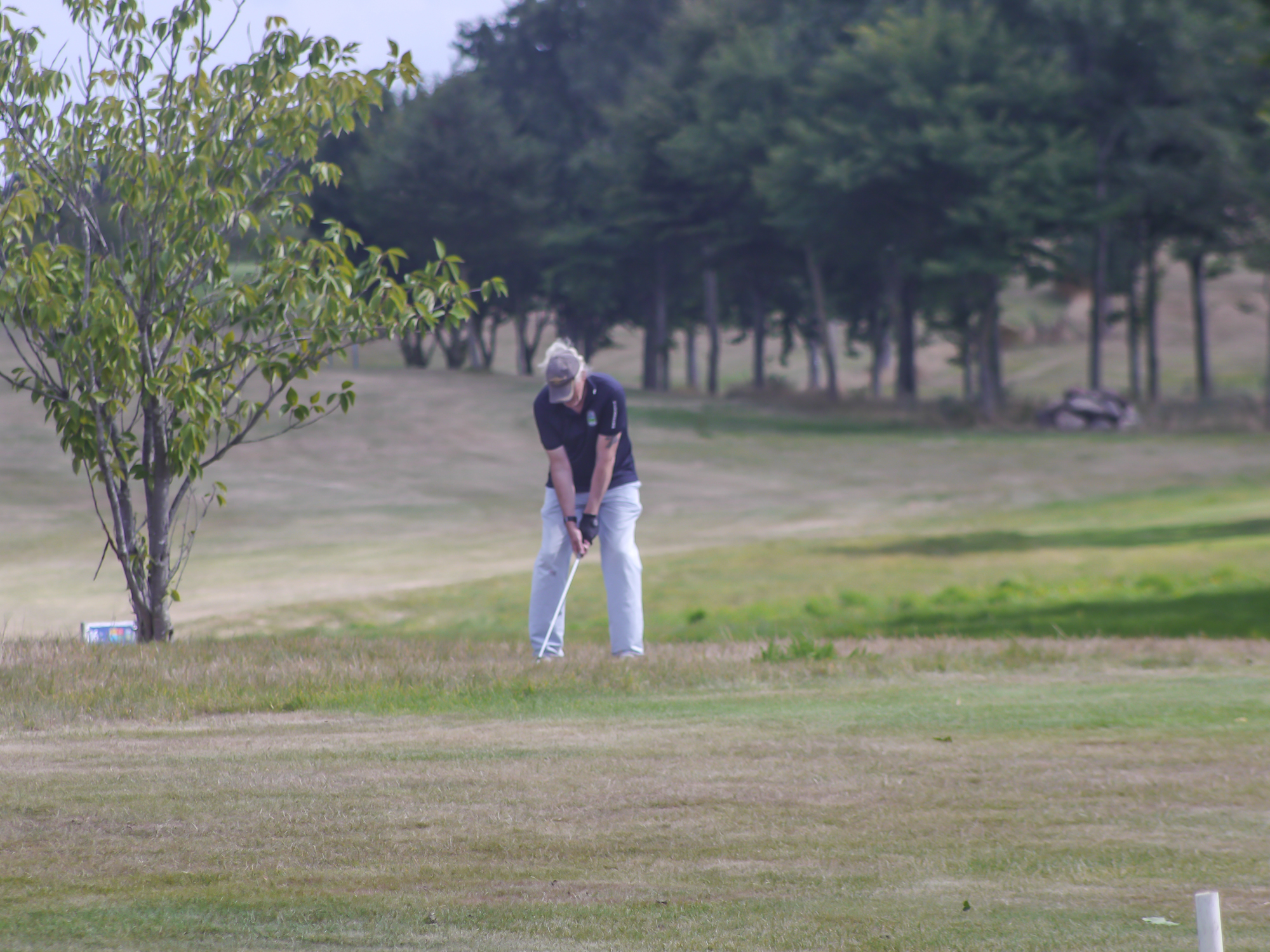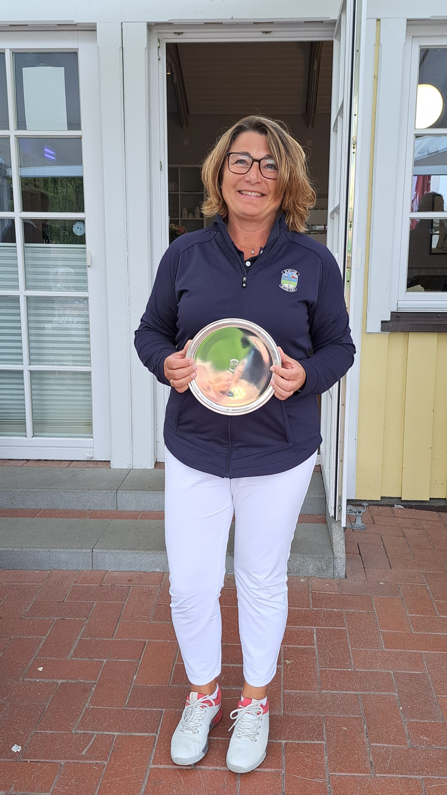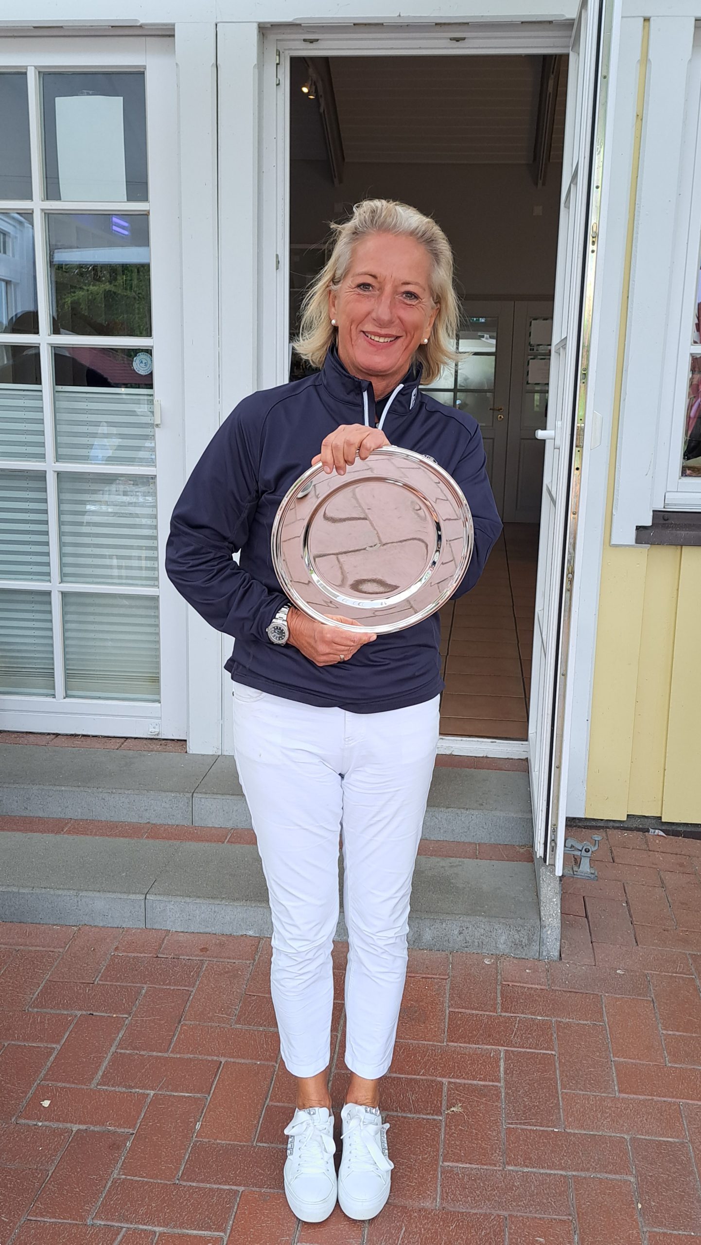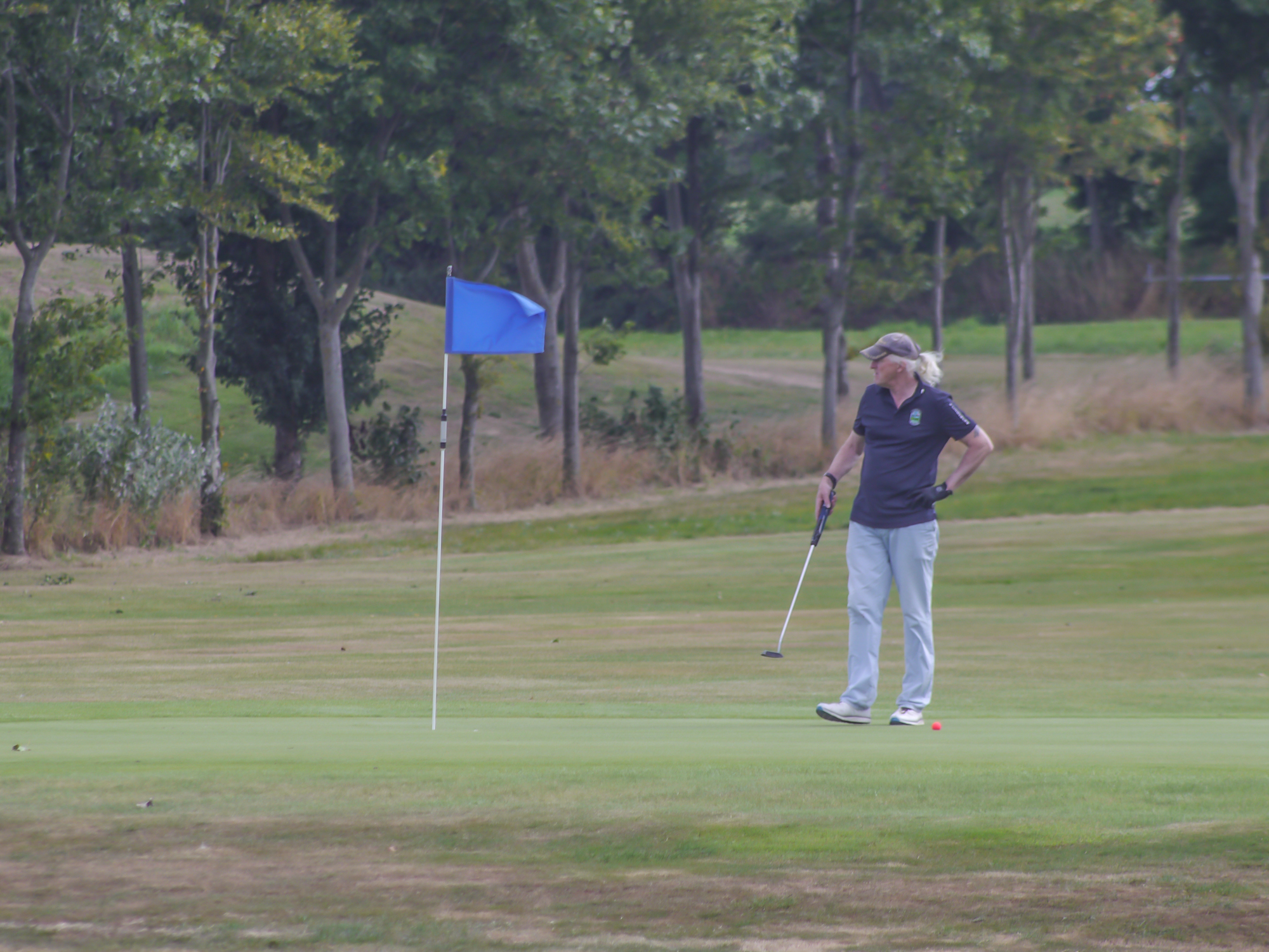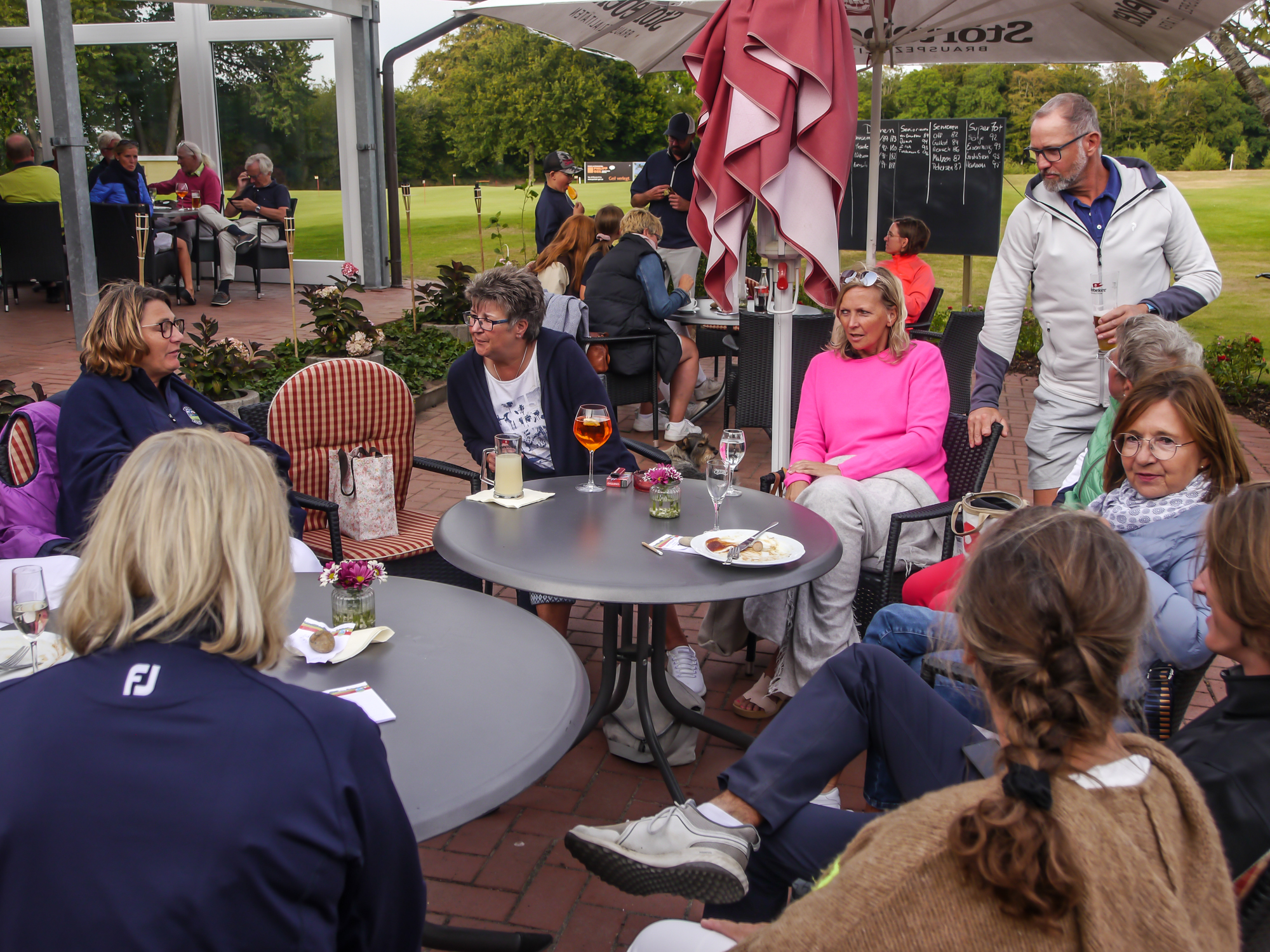 Die vorletzte Gruppe waren unsere Damen. Mette Jensen war fest entschlossen in diesem Jahr mal wieder den Titel bei den Damen zu holen. Natürlich würde Petra Massolle das gerne verhindern. 7 Schläge aufholen würde allerdings ein schweres Unterfangen. Zwar konnte Petra mit ihrer 88er Runde noch 2 Schläge auf Mette aufholen, die 90 von Mette war allerdings zu solide, um noch in Gefahr zu geraten. Harriet Bersch spielte mit 86 Schlägen die beste Runde des Tages und zog noch an Michaela Nehlsen vorbei auf Rang 3.