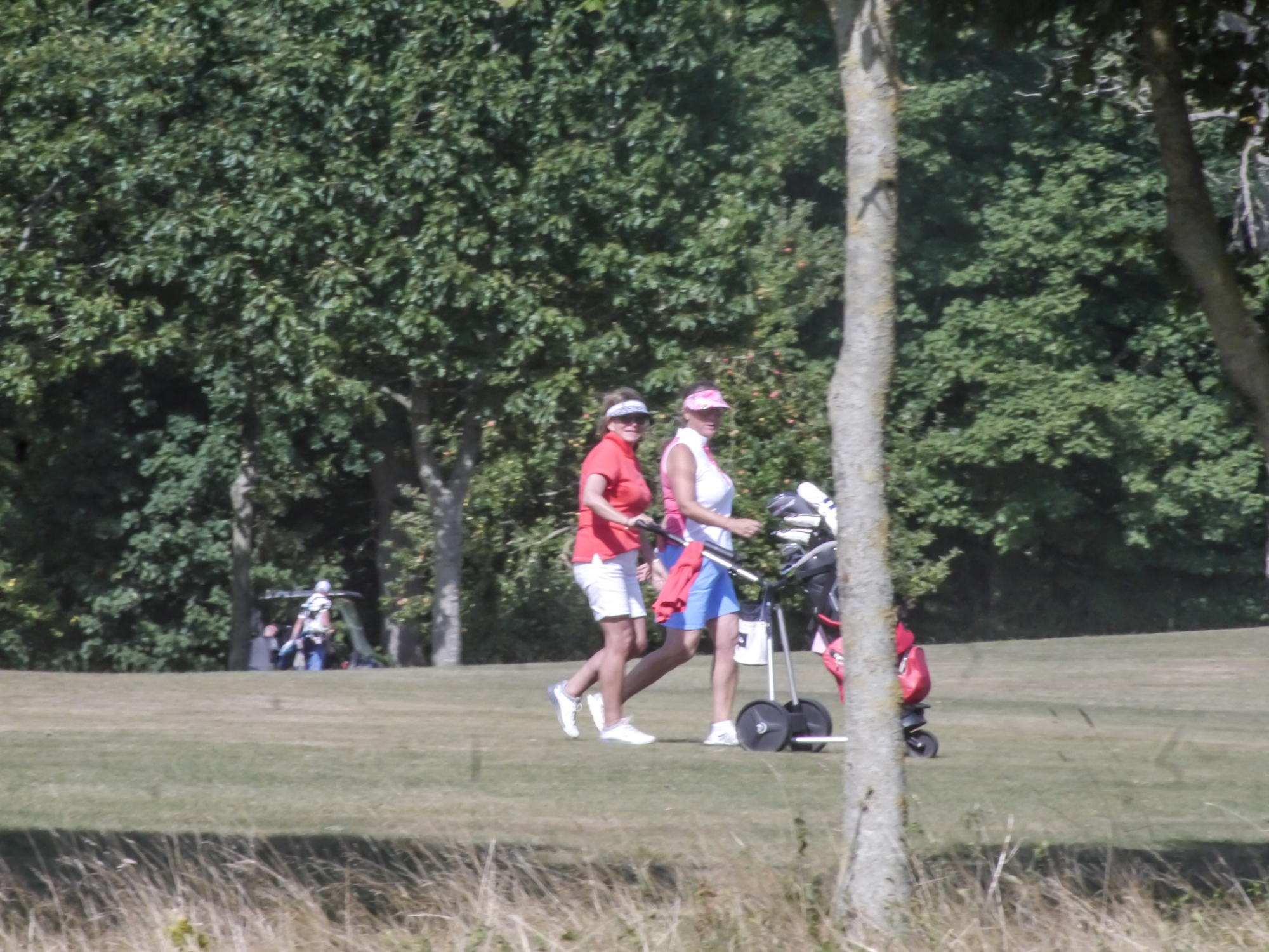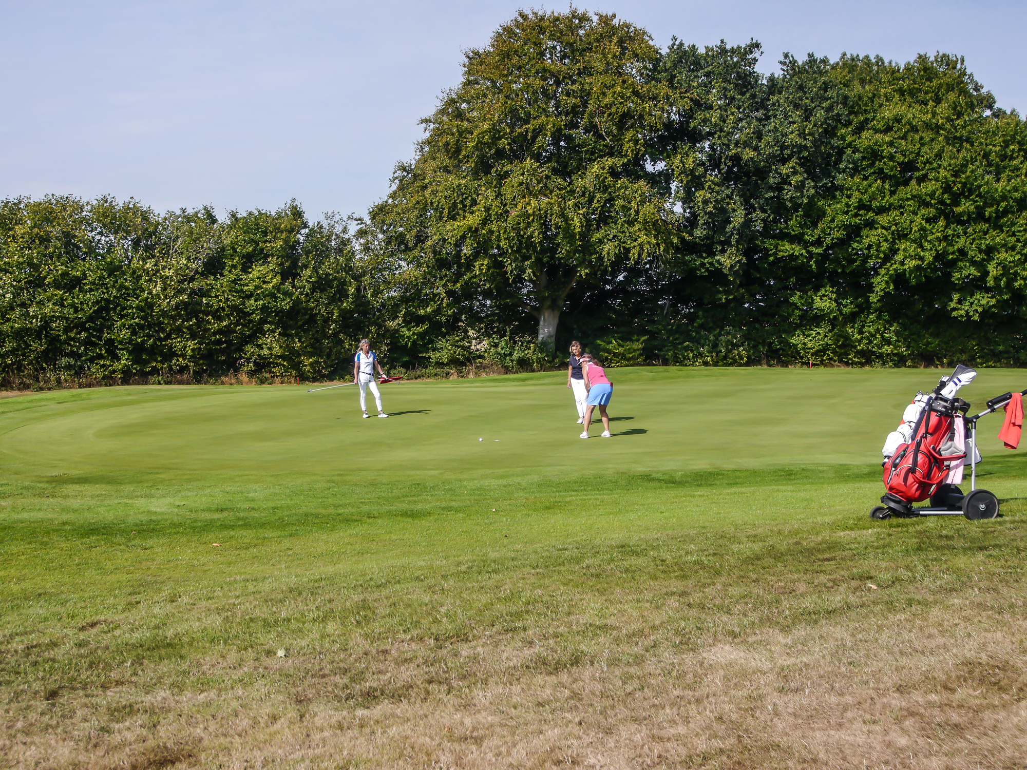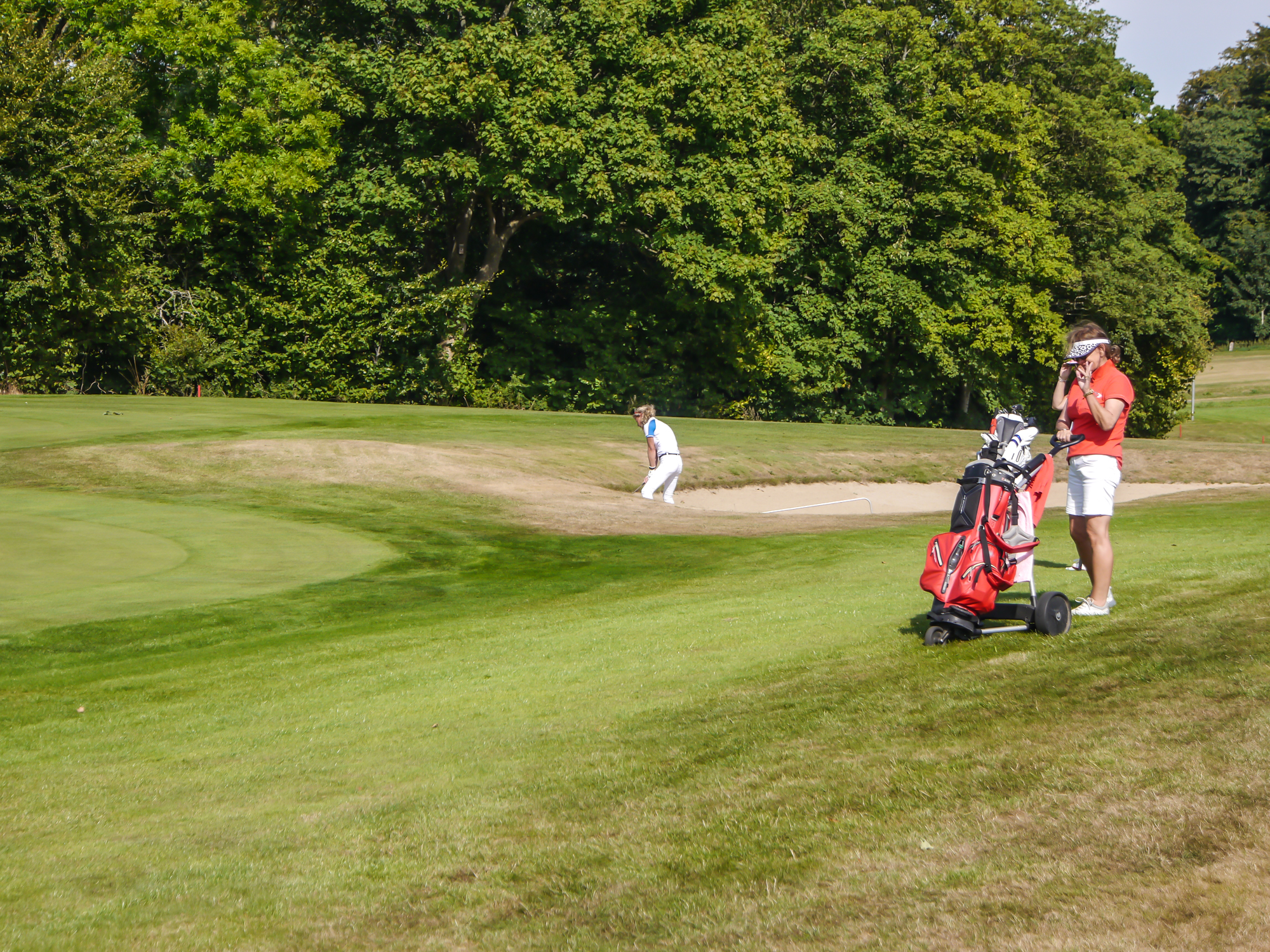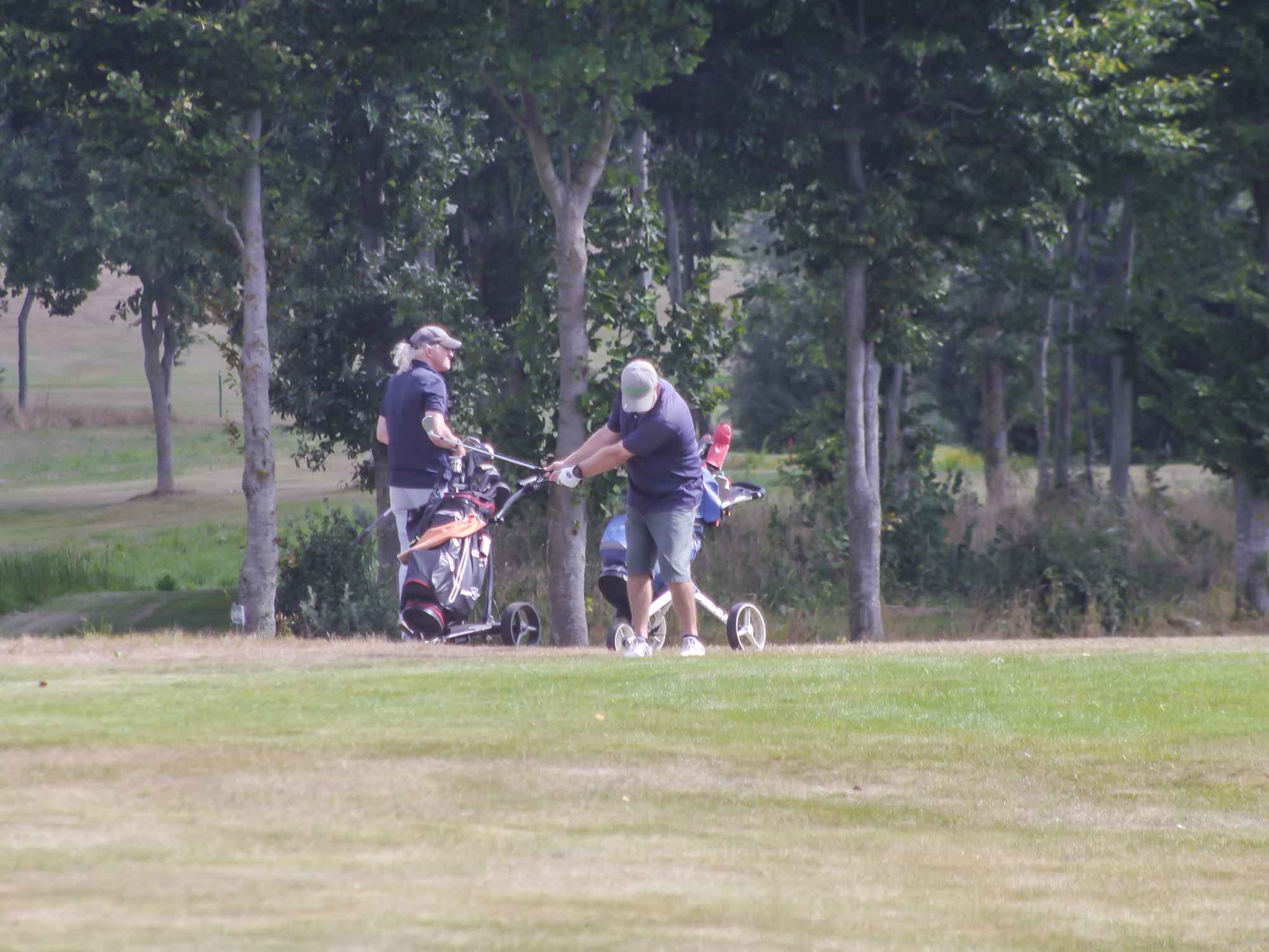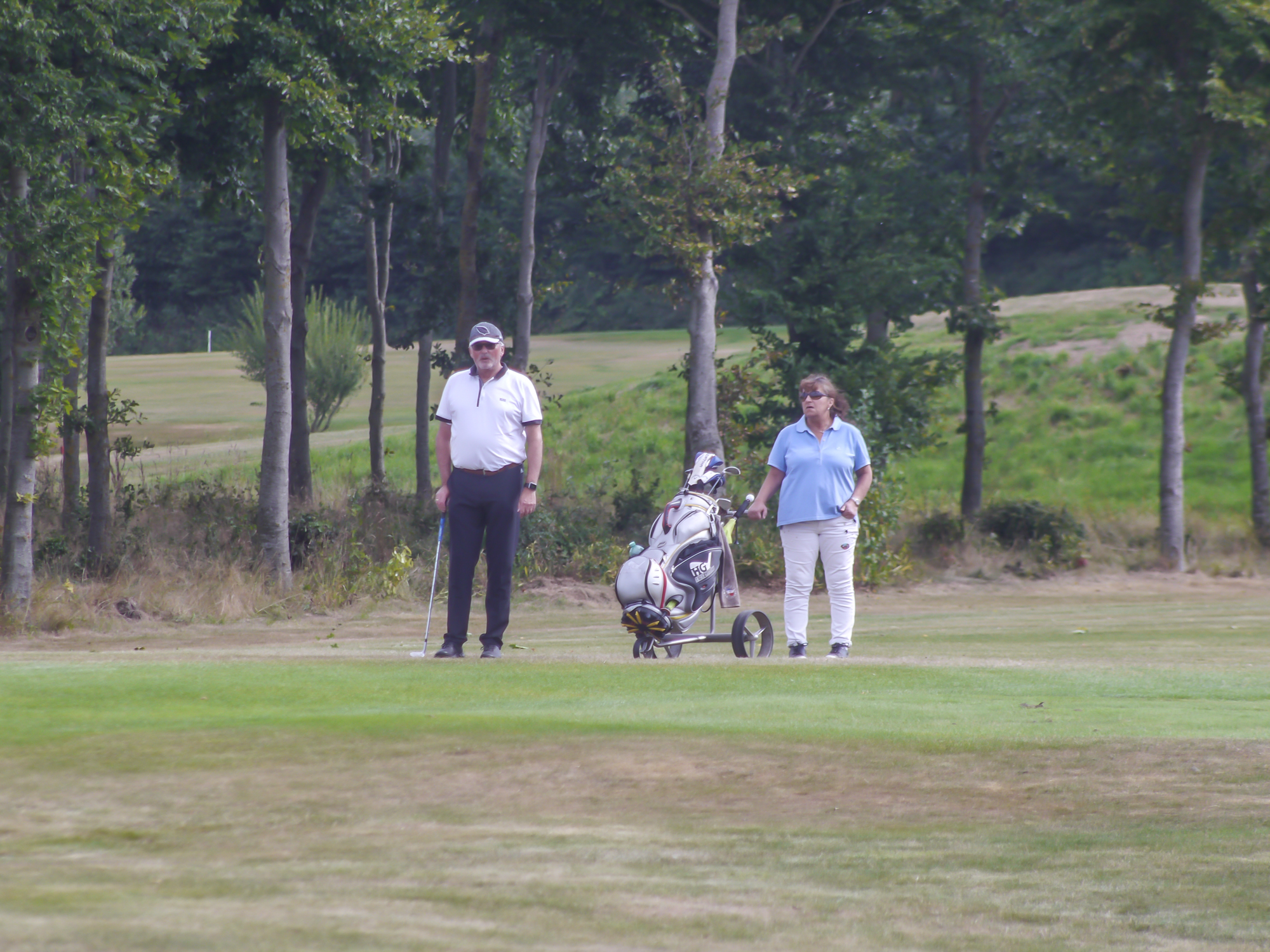 Die vorletzte Gruppe waren unsere Damen. Mette Jensen war fest entschlossen in diesem Jahr mal wieder den Titel bei den Damen zu holen. Natürlich würde Petra Massolle das gerne verhindern. 7 Schläge aufholen würde allerdings ein schweres Unterfangen. Zwar konnte Petra mit ihrer 88er Runde noch 2 Schläge auf Mette aufholen, die 90 von Mette war allerdings zu solide, um noch in Gefahr zu geraten. Harriet Bersch spielte mit 86 Schlägen die beste Runde des Tages und zog noch an Michaela Nehlsen vorbei auf Rang 3.