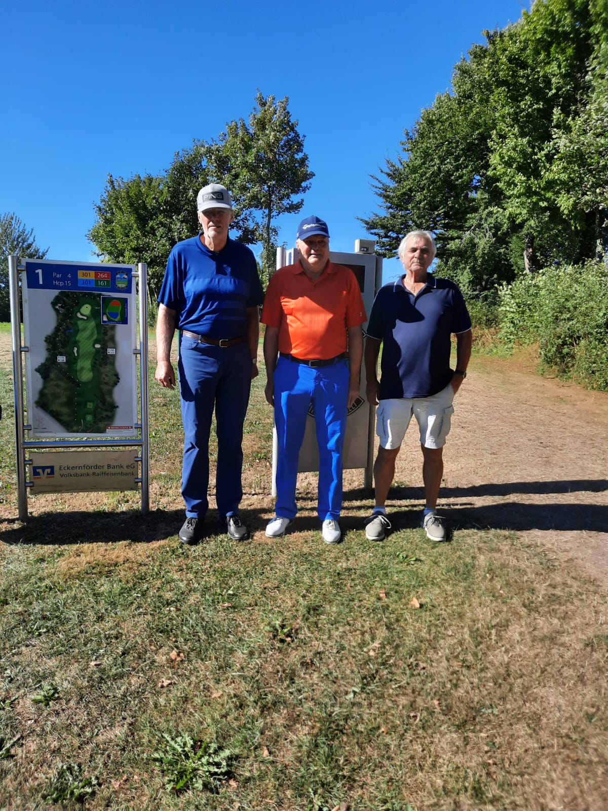 Bekannt souverän spielte Karl-Heinz Söthje seine Runde. 92 Schläge waren der Bestwert. Manfred Eisenmenger war dicht dran. 93 Schläge notierte er auf seiner Scorekarte. Mit jeweils 95 Schlägen lagen Karl-Alfred Gustafson und Hans-Jürgen Hansen allerdings auch noch in Schlagdistanz.
