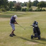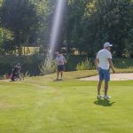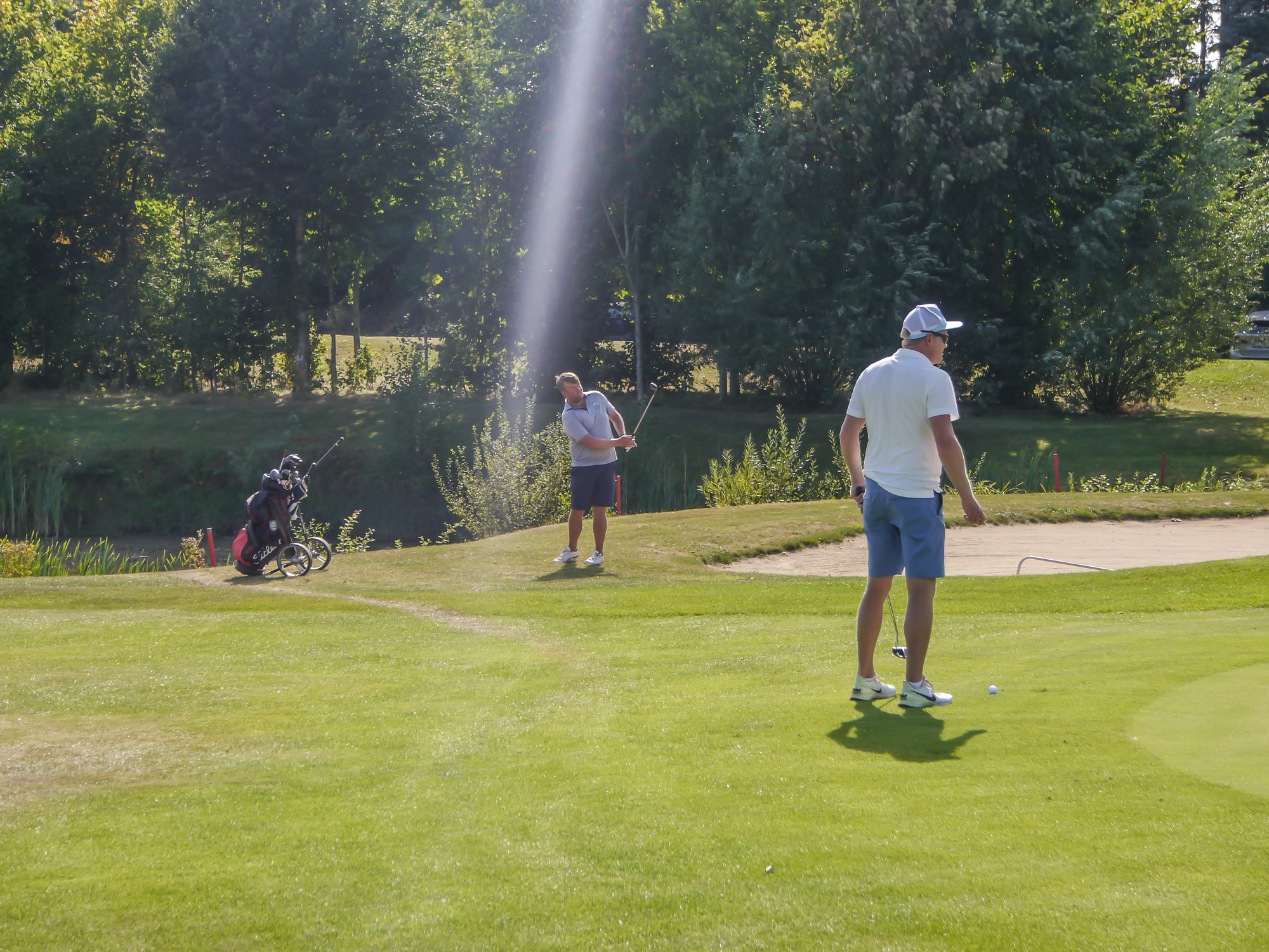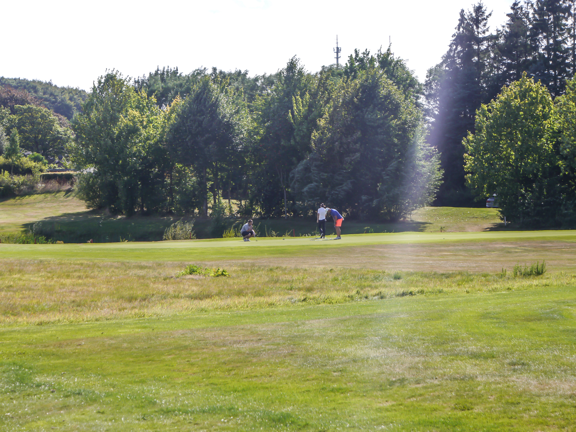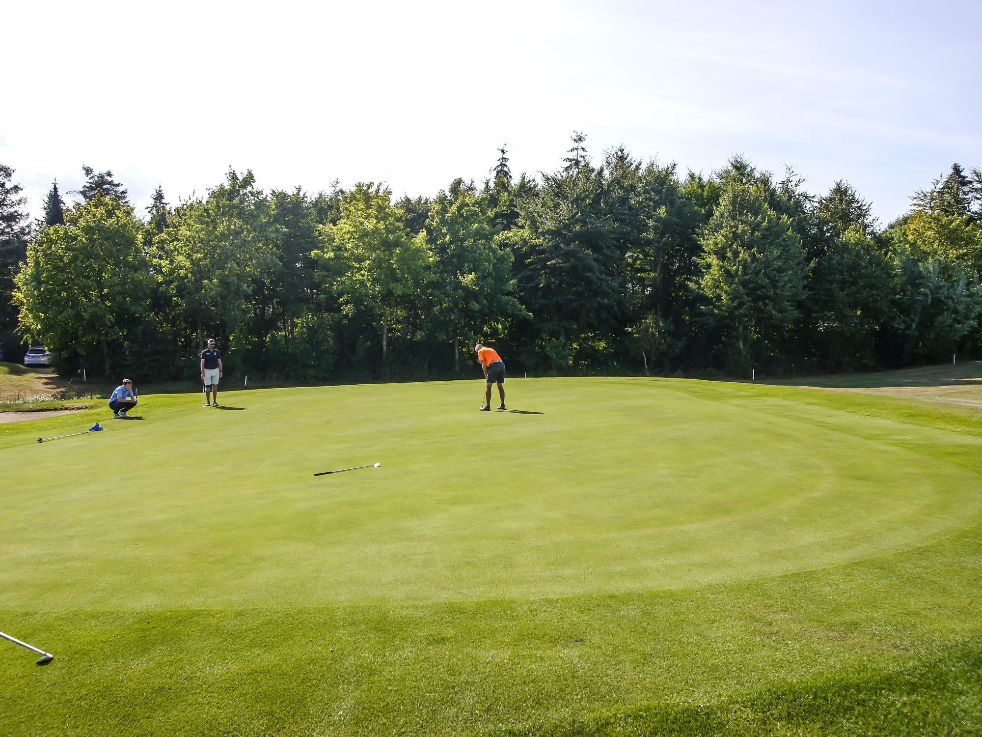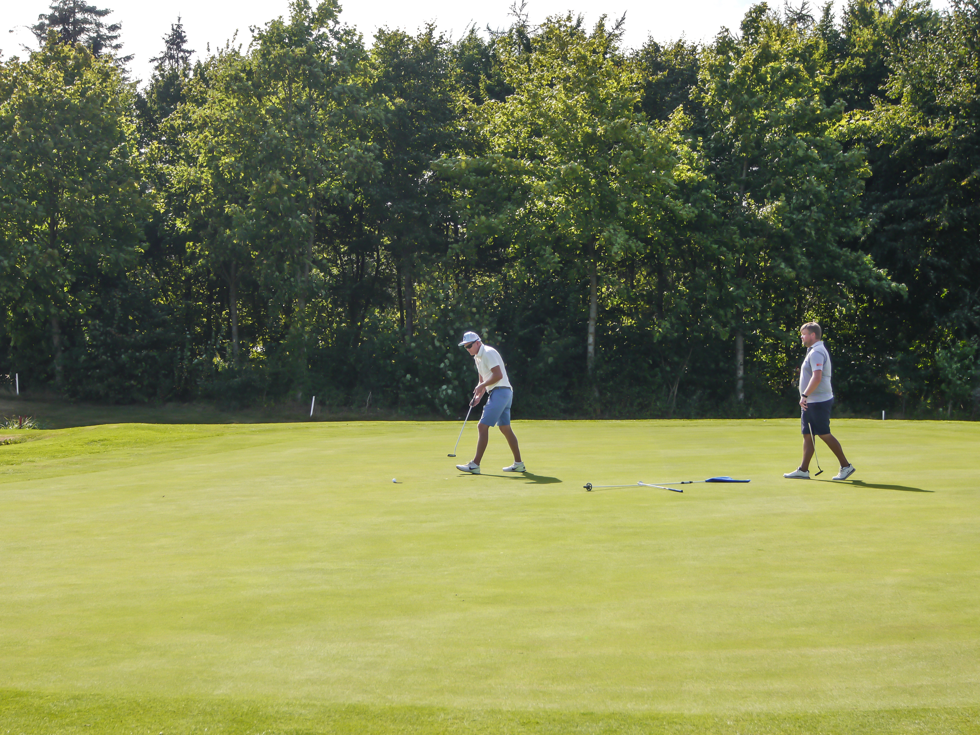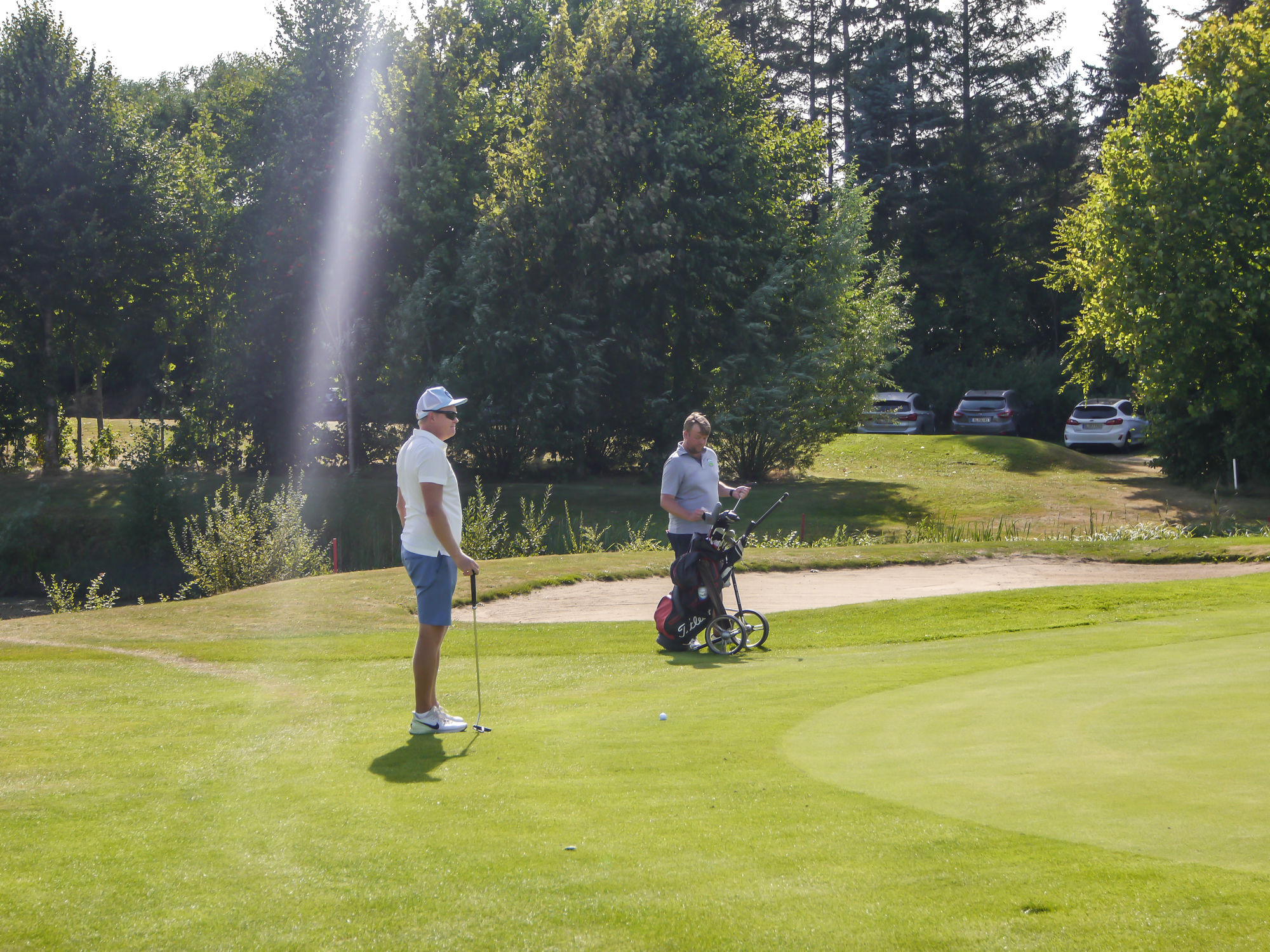 Doch bereits nach Runde 1 ließen Nico Hetzel und Philipp Geil alle Träume der anderen zerplatzen. Nico spielte die 18 Löcher in Par (72) und verwies seinen nächsten Verfolger Altmeister Philipp Geil (73) auf den 2. Platz. Aber auch Tim-Hendrik Borchert mit 77 Schlägen musste sich natürlich noch nicht geschlagen geben, was er am Nachmittag auch unter Beweis stellte. In der 2. Runde konnte Borchert Nico Hetzel paroli bieten und beide notierten 74 Schläge auf ihrer Scorekarte. Mit einem Vorsprung von 4 Schlägen von Nico Hetzel (146) ging es für das Trio am Sonntag auf die Schlussrunde. Tim-Hendrik(151) lag auf dem 3. Platz und Philipp (150) ging auf Platz 2 auf die letzten 18 Löcher.