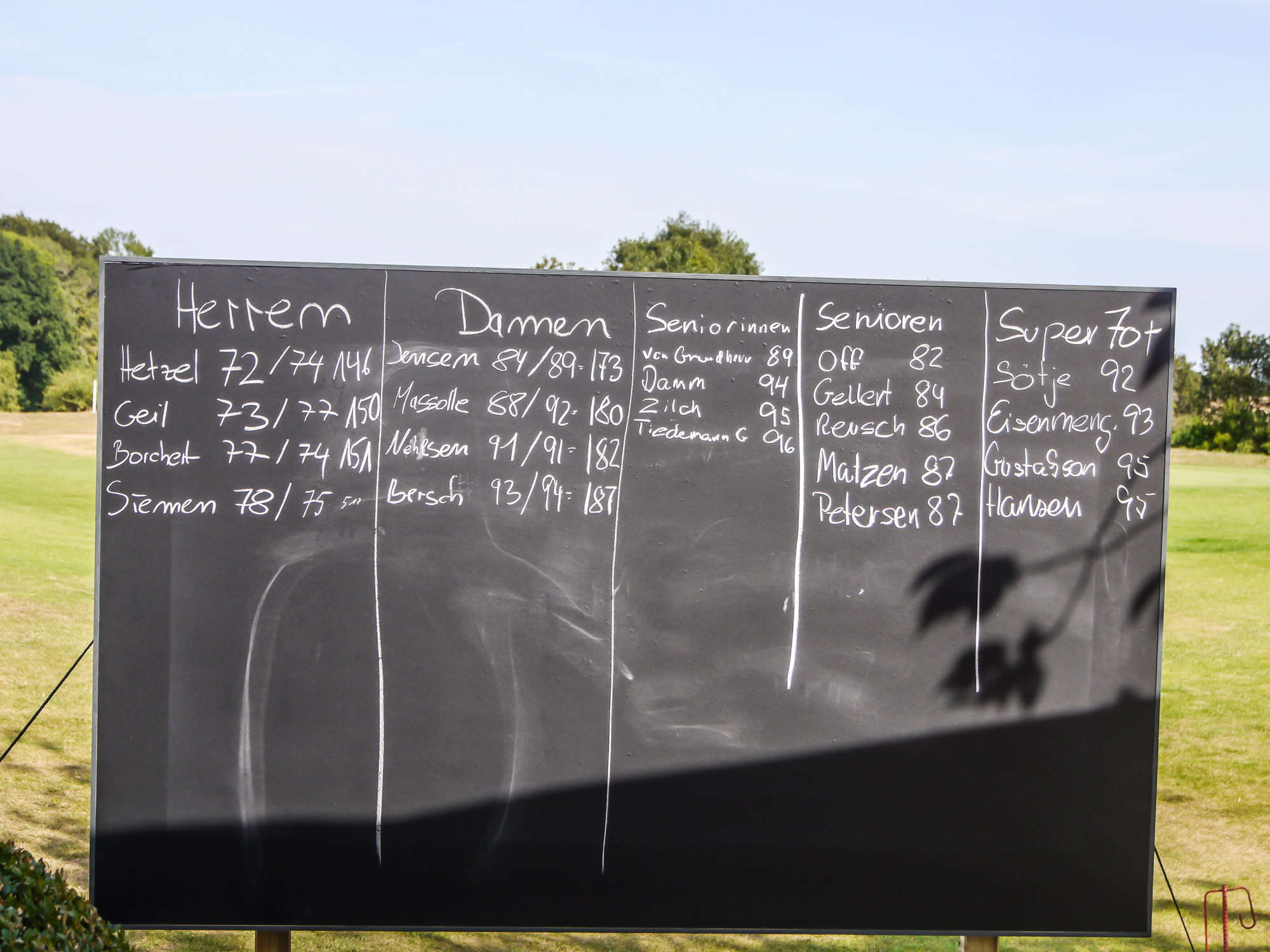 Wie in jedem Jahr stellten unsere Senioren die größte Gruppe. Die Erfahrung der letzten Jahre zeigte, dass hier viele in der Lage sind, um den Titel mit zu spielen. Axel Off erwischte einen tollen Tag. Nach 18 Löchern brachte er eine 82 ins Clubhaus. Kay Gellert benötigte 84 Schläge und war damit ärgster Verfolger. Präsident Joachim Reusch ließ sich aber auch nicht abschütteln und wahrte seine Chancen mit 86 Schlägen auf dem 3. Platz. Aber auch Bernd Matzen (87) und Uwe Petersen (87) hatten den Kampf um den Titel natürlich noch nicht aufgegeben.