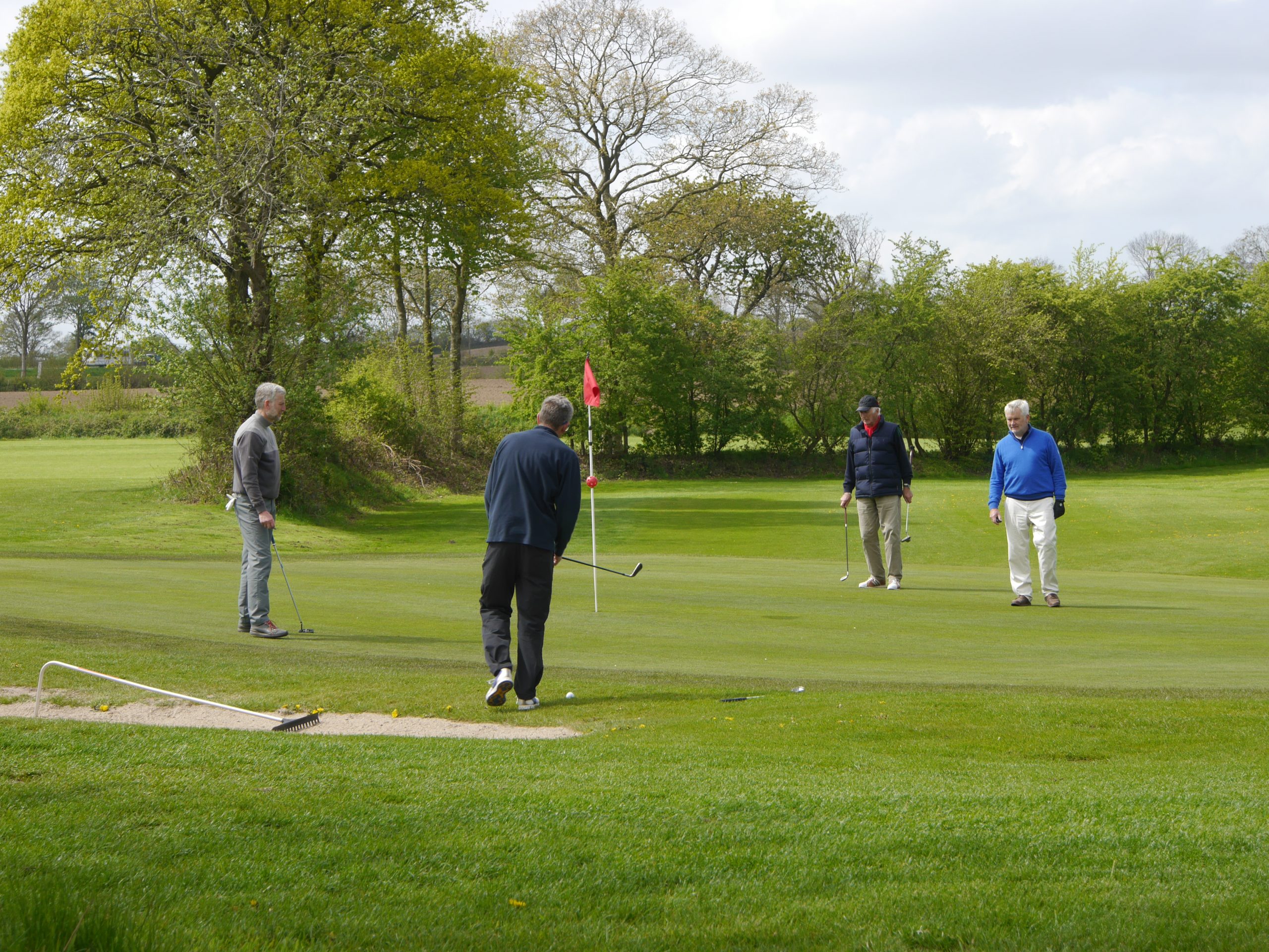 Klassischer Vierer stand auf dem Programm. “ Von 56 angemeldeten Personen haben auch tatsächlich 48 im Büro angerufen und nach der Startzeit und der Flight – Zusammensetzung gefragt.“ sagte Volker Schwarz bei der Begrüßung. Allerdings, so normal sollte es dann doch nicht sein. Volker verkündete die Flights persönlich. Für viele eine Überraschung….auch wen das Losglück zusammen geführt hatte.