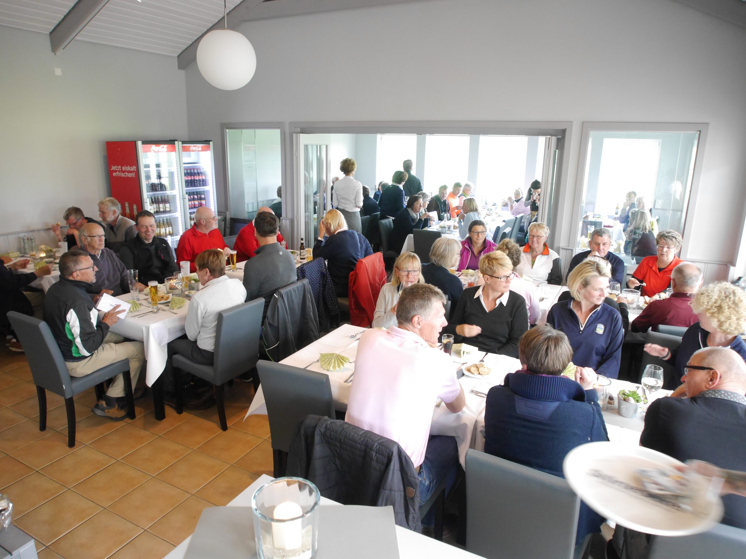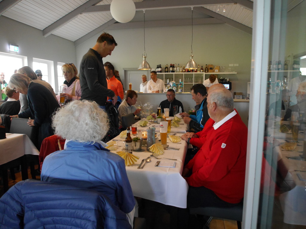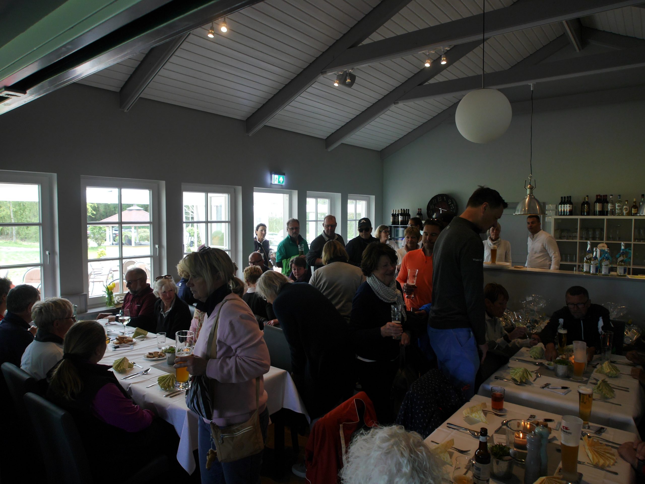 “ Wir sehen uns dann in 3 Stunden hier im Clubhaus wieder “ hatte Volker vor dem Turnier noch mit einem Augenzwinkern gesagt. Die Turnierteilnehmer dachten sich – kein Problem – und tatsächlich waren die 18 Löcher in unter 3 Stunden gespielt. Zum Essen und zur Siegerehrung trafen sich alle wieder im Pullmann´s, wo alles liebevoll eingedeckt und hergerichtet war.