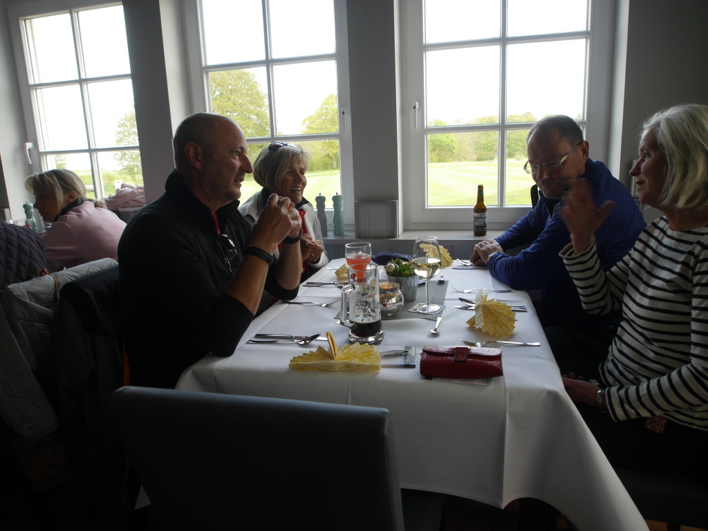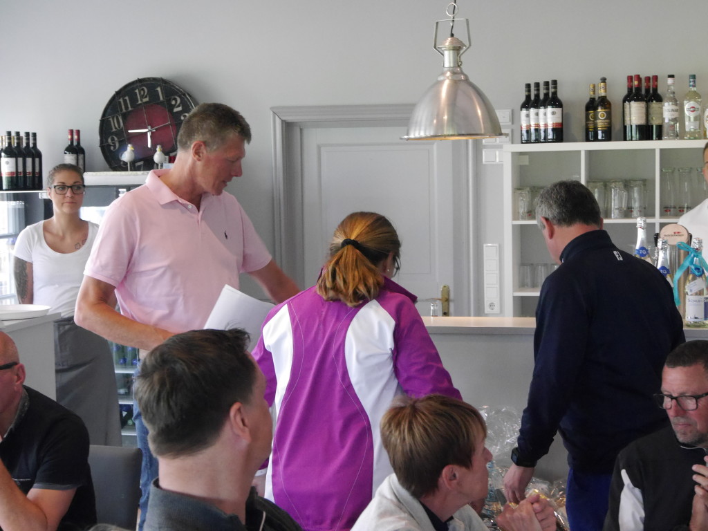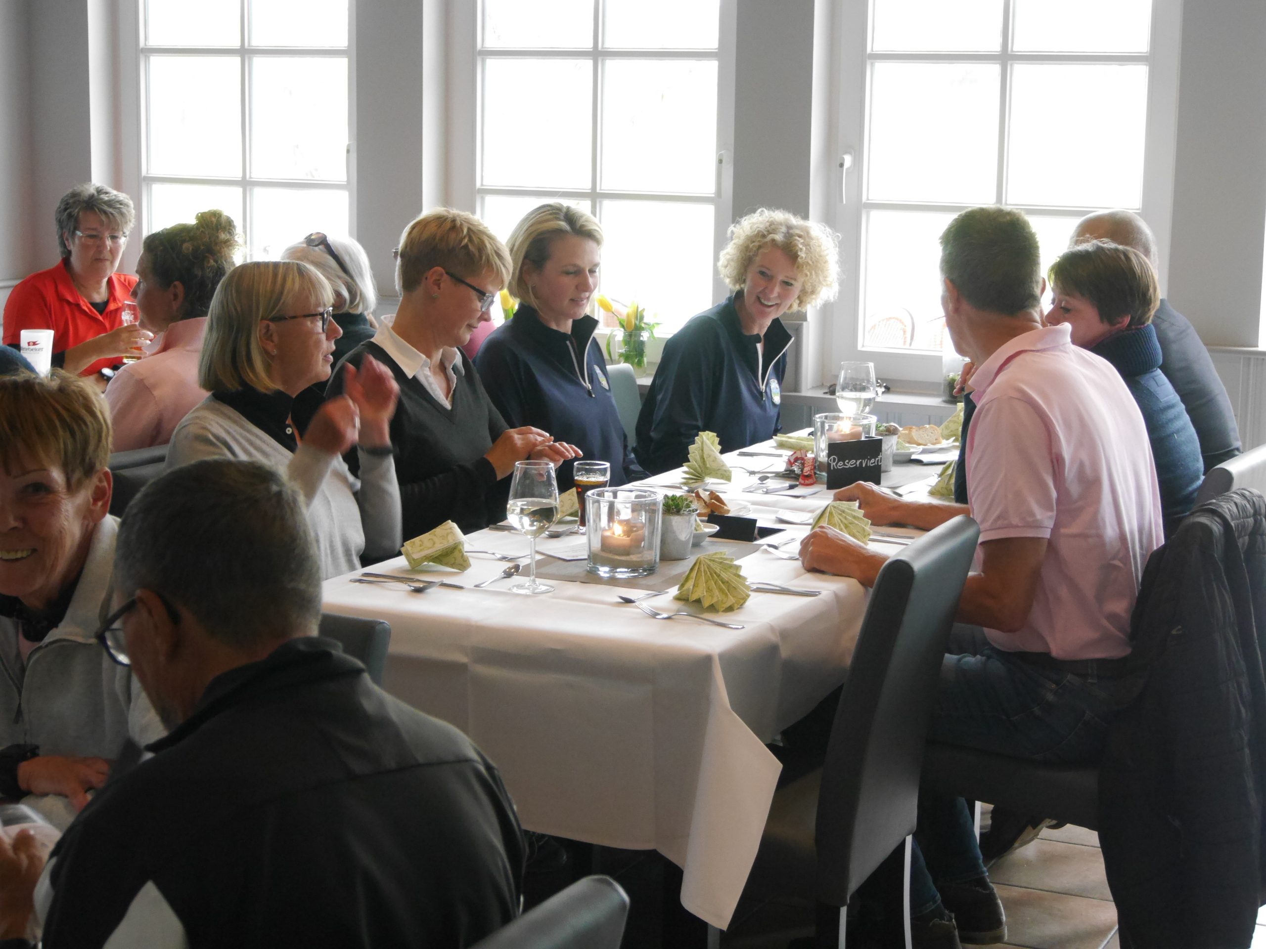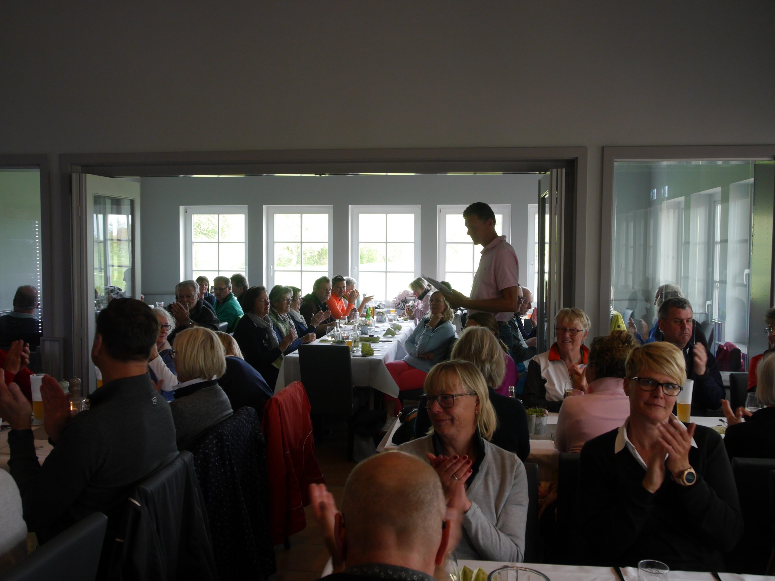 “ Wir sehen uns dann in 3 Stunden hier im Clubhaus wieder “ hatte Volker vor dem Turnier noch mit einem Augenzwinkern gesagt. Die Turnierteilnehmer dachten sich – kein Problem – und tatsächlich waren die 18 Löcher in unter 3 Stunden gespielt. Zum Essen und zur Siegerehrung trafen sich alle wieder im Pullmann´s, wo alles liebevoll eingedeckt und hergerichtet war.
