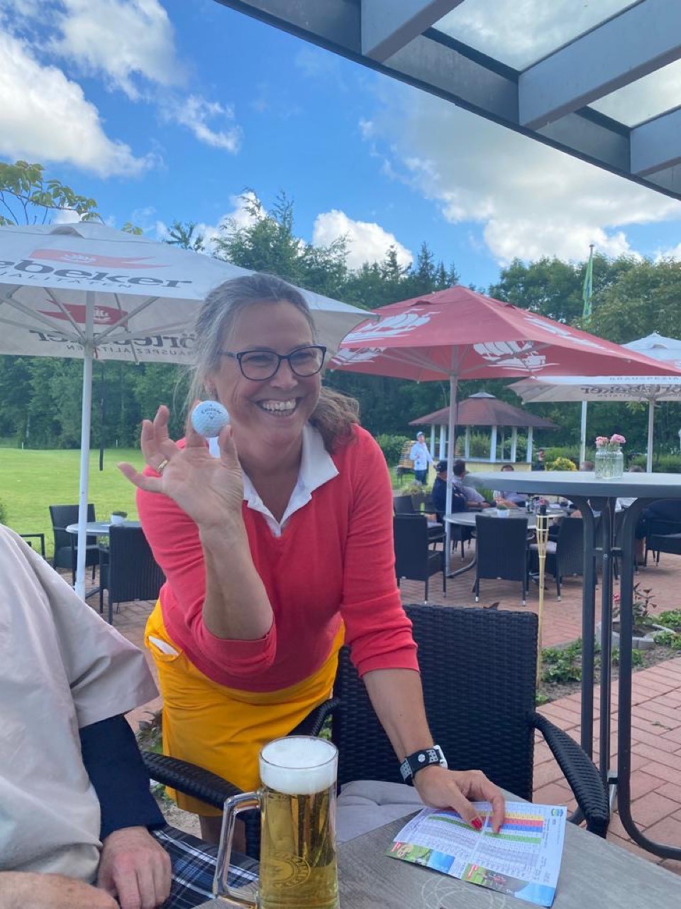 Auf Bahn 9 schien alles wie immer. Ein souveräner Abschlag flog Richtung Grün. Am Grün angekommen machten sich Heinke und ihre Flightpartner auf die Suche nach dem Ball. Weder auf noch neben dem Grün war der Ball zu finden. Bis Claus Schömers einen Blick ins Loch riskierte und Heinkes Ball dort auch fand.