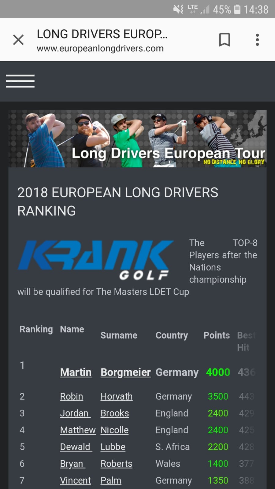 Mittlerweile bin ich 1st Chairman der European Long Drive Association und Mit-besitzer der European Long Drive Games sowie Vice-Head-Professional-Worldwide der sich im Aufbau befindlichen International Long Drive Performance Center.