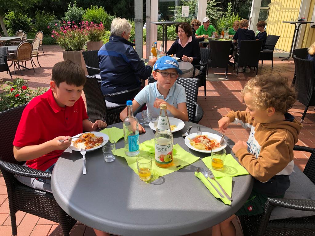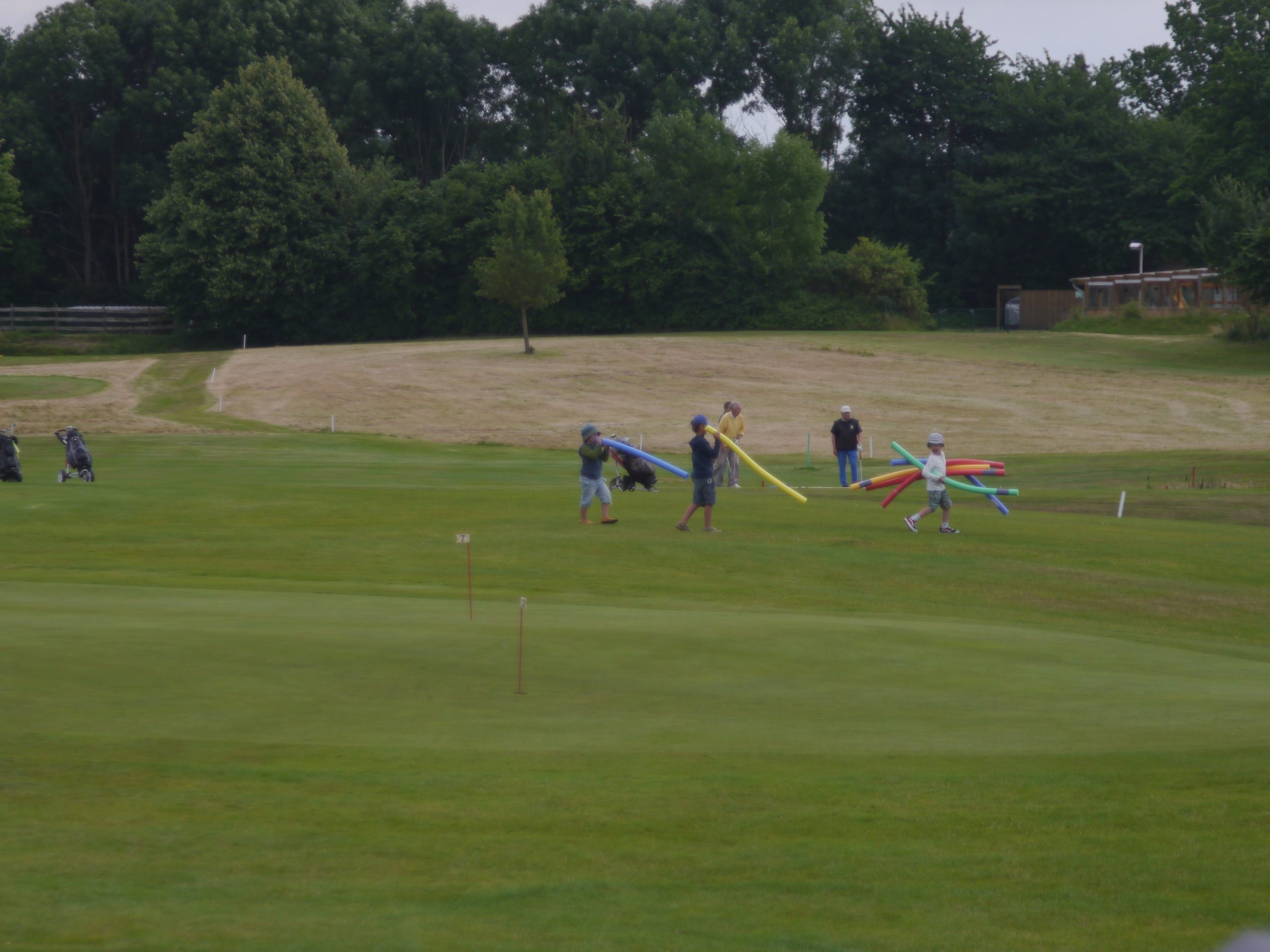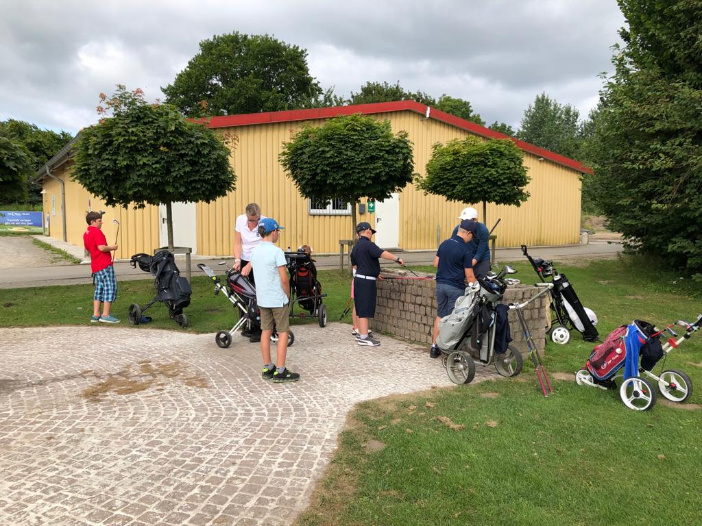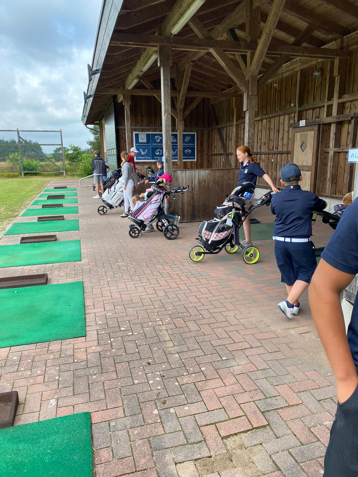 Die Kinder und Jugendlichen wurden in 2 Gruppen geteilt. Zum einen waren da die Bambinis, das ist die Gruppe der ganz kleinen und die ohne Golferfahrung. Zum anderen gab es die Gruppe der Golfer, also all diejenigen, die bereits über ein Hcp verfügen.