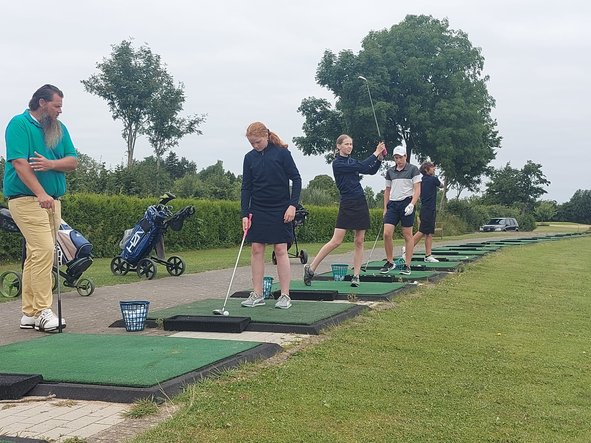 Die „Großen“ wurden von den Pros der Golfschule Asmus Lembke auf der Driving Range oder auf dem Übungsplatz angeleitet.