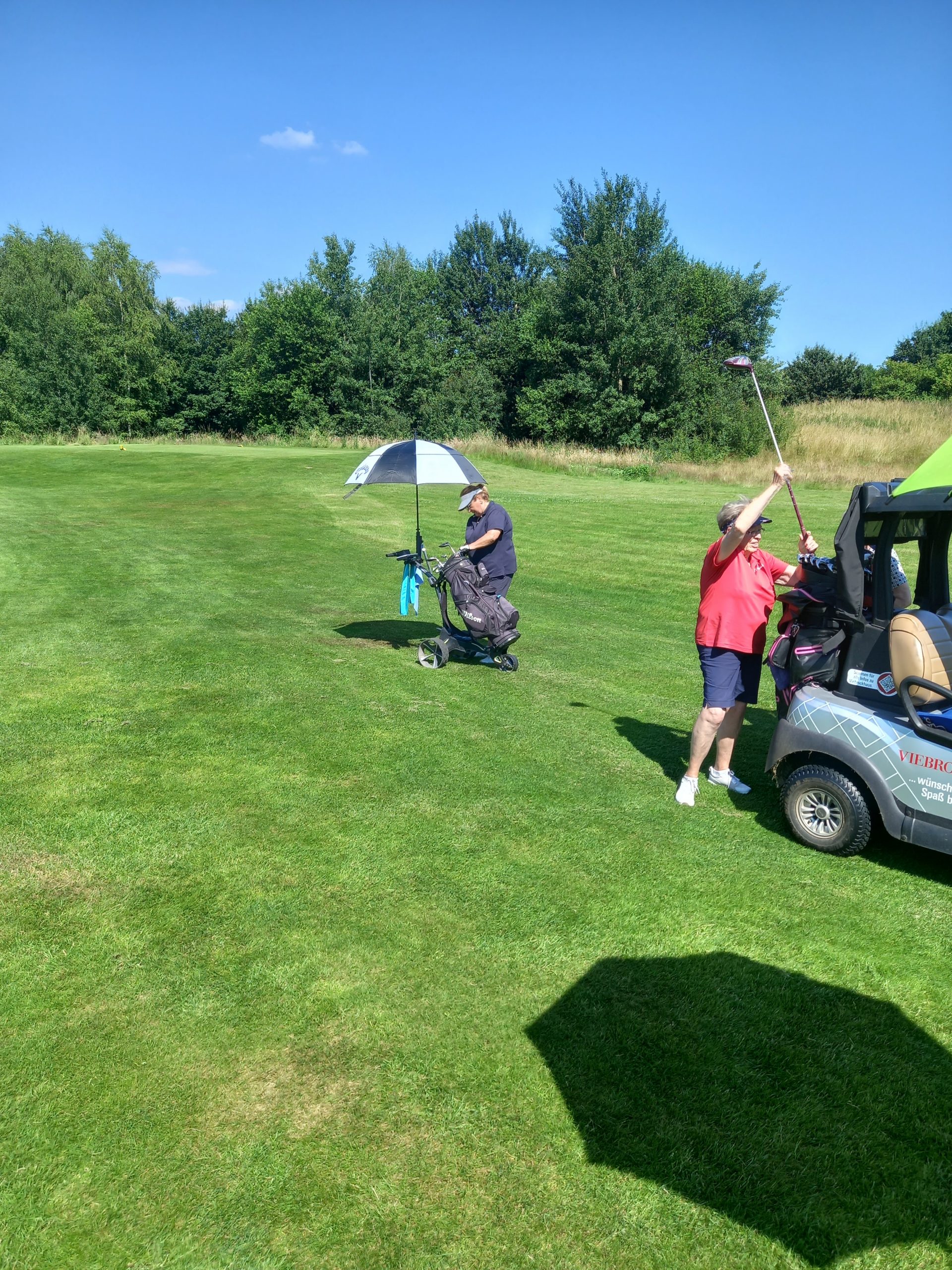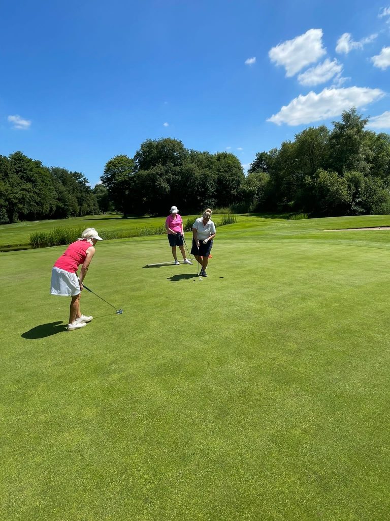 Die Sonne strahlte, als sich 14 Ladies auf den Weg zum Golfplatz Deinster Geest machten. Sommerliche Temperaturen versprachen einen perfekten Tag für Golfrunden auf diesem gepflegten Parkland Course. Breite Fairways und zahlreiche Hindernisse wie Wasser und Bunker forderten die Spielerinnen heraus.