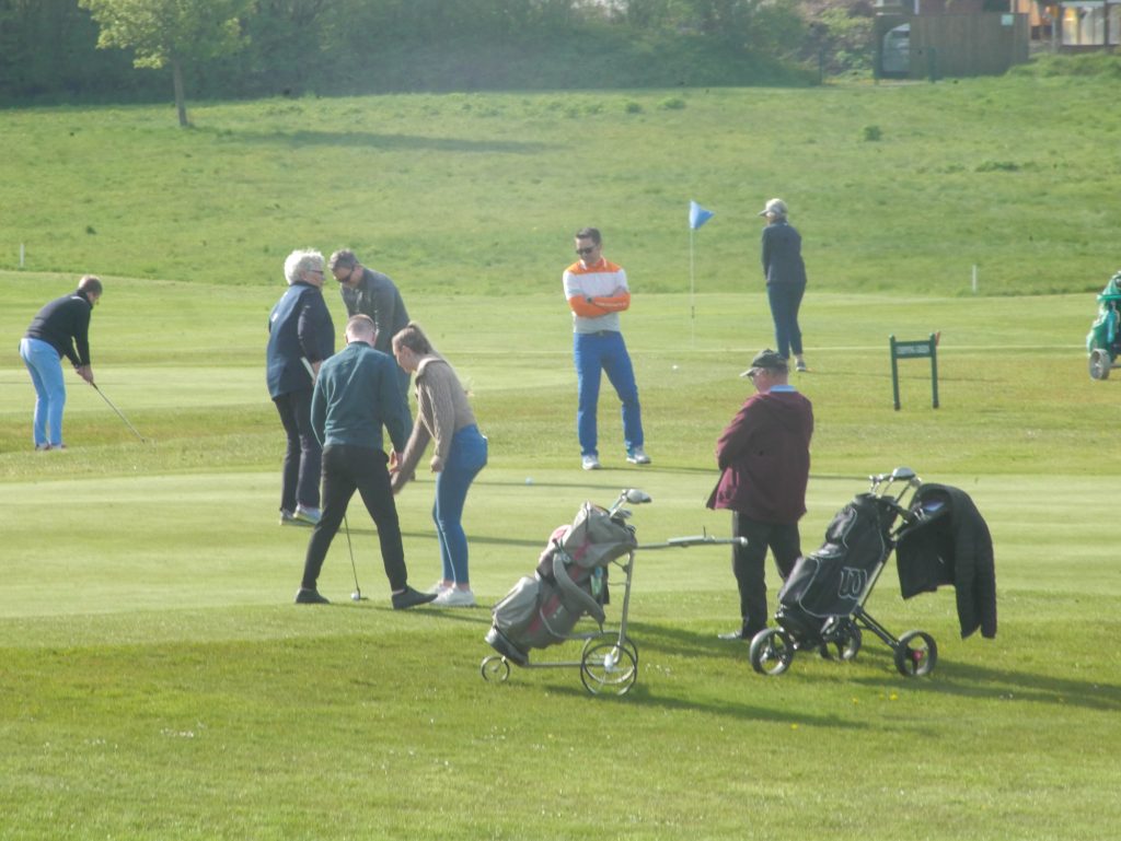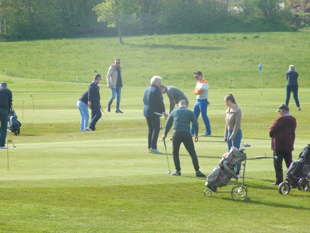 Auch in diesem Jahr wollten wir unseren Mitgliedern die Möglichkeit geben einen Tag mit Freunden oder Familienmitgliedern auf dem Golfplatz zu verbringen. Ein Format, dass von vielen Mitgliedern sehr gerne angenommen wurde. 56 Personen umfasste die Startliste, gespielt wurde ein 2er Texas Scramble. Diese Spielform wurde bewusst gewählt, um auch unseren Gästen die Chance zu geben, jeden Schlag auf dem Weg vom Abschlag bis zur Fahne zu machen. Gewertet wurde als Team, der beste Score wurde notiert. Um 9 Uhr trafen sich die Teilnehmer auf der Driving Range und machten die ersten Schlagversuche unter der Anleitung ihrer erfahrenen Golfer und des Pros. Natürlich gelang nicht jedem jeder Schlag, aber Ansätze waren deutlich zu erkennen und je öfter die Gäste ihren Ball zum Fliegen brachten, desto größer war der Spaßfaktor. Selbstverständlich beließen wir es nicht dabei, sondern schickten alle Teilnehmer auf eine 9-Loch Runde. Um 10 Uhr erklang die Sirene für den Kanonenstart und der Spaß konnte beginnen.