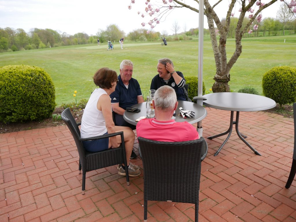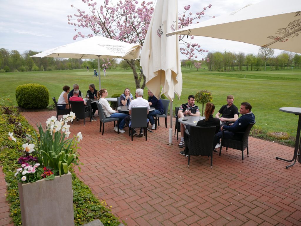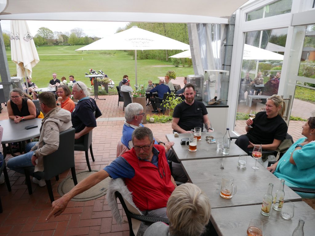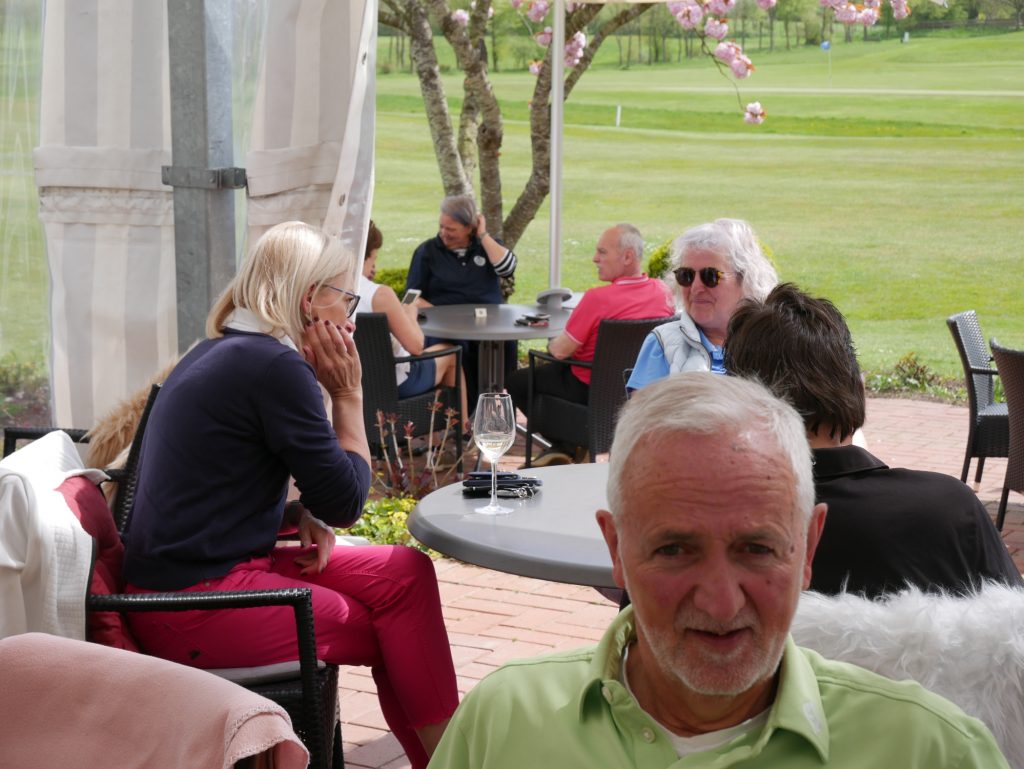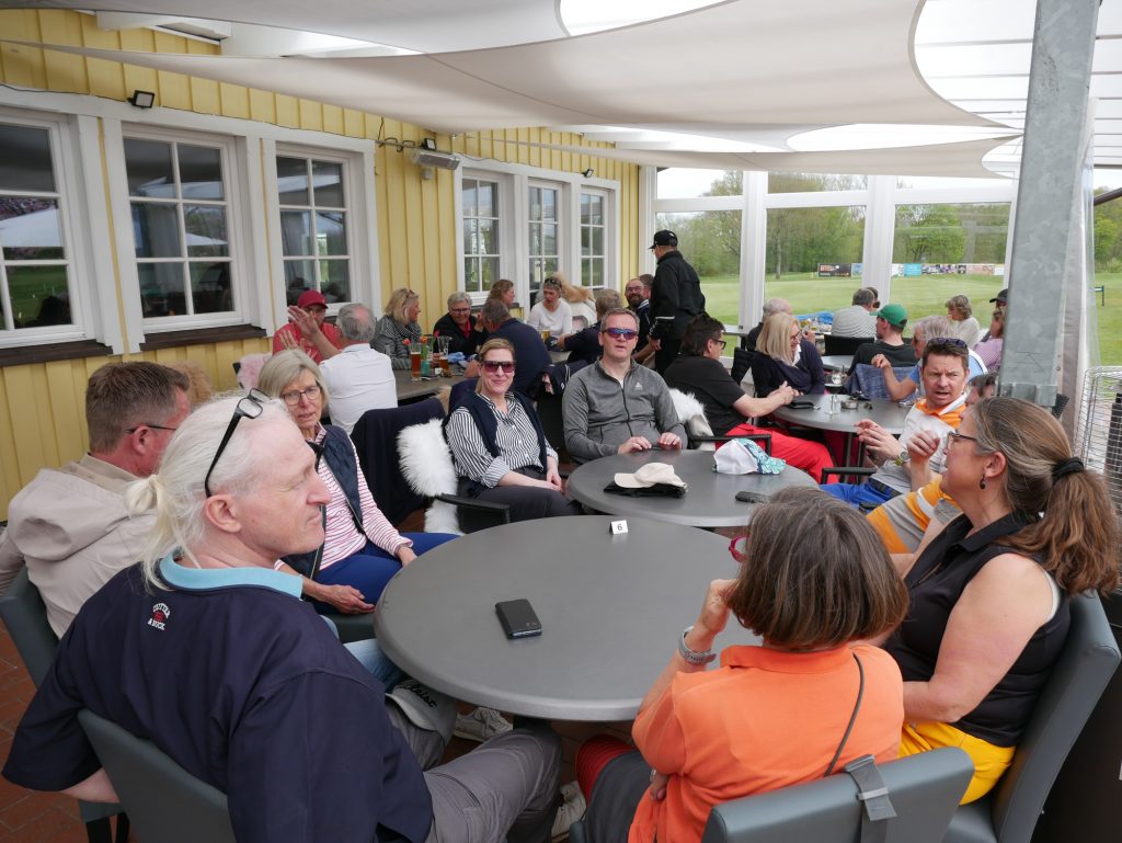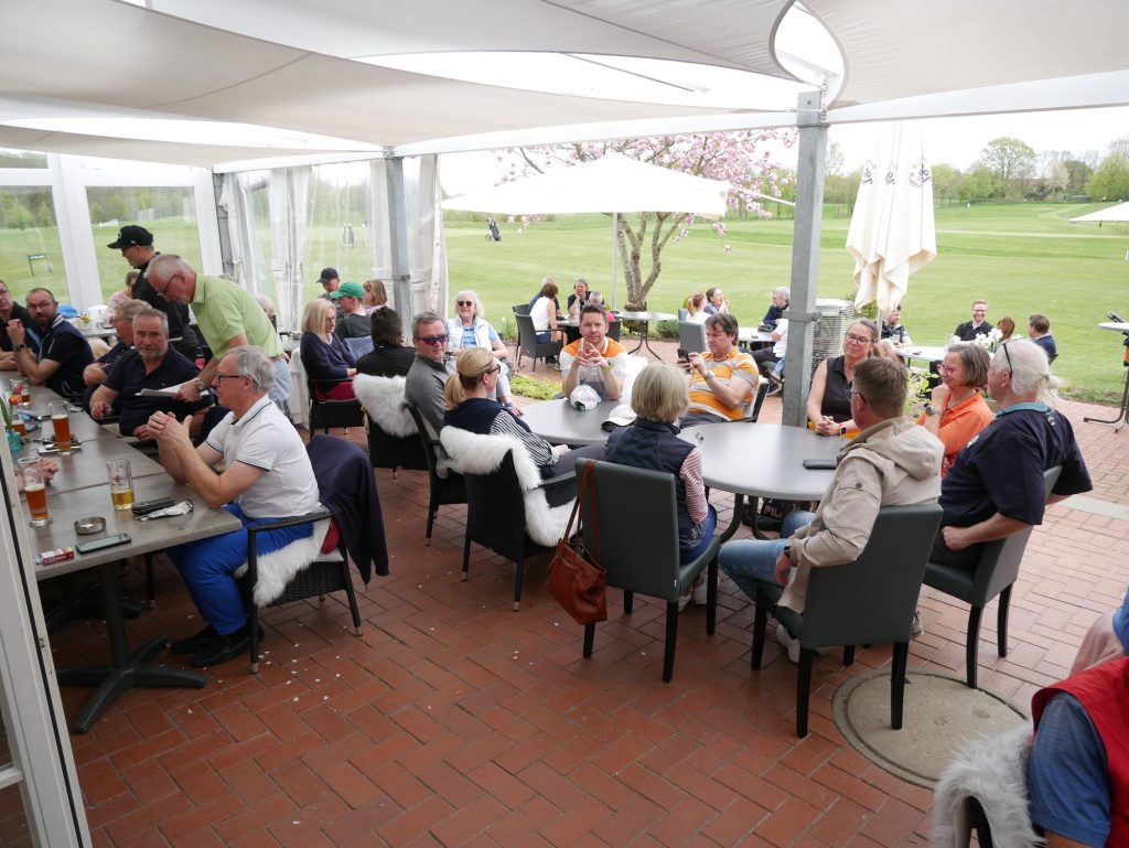 Nach gut 3 Stunden kamen alle wieder im Clubhaus an und versammelten sich auf der Terrasse zu einem gemeinsamen Essen. Auch eine Siegerehrung durfte nicht fehlen. Präsident Joachim Reusch bedankte sich für die zahlreiche Teilnahme und verkündete das Ergebnis.