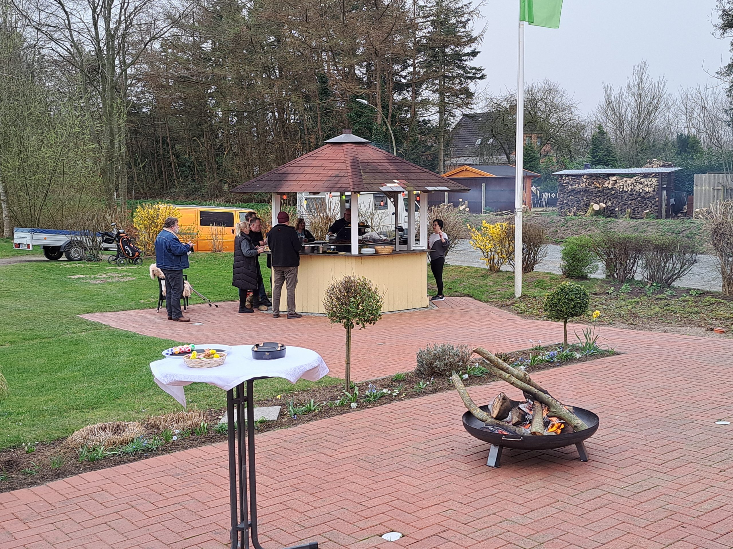 Am 30.03.2024 veranstaltete unser Gastwirt Björn Baasch zum ersten Mal ein Osterfeuer. Natürlich war das kleine Feuer nicht das Highlight des Tages. Viele Mitglieder und Gäste versammelten sich auf der Clubterrasse um die von Björn auf dem Grill frisch zubereiteten Köstlichkeiten zu genießen. Björn servierte seinen Gästen nicht einfach eine Bratwurst oder ein gefülltes Hackröllchen, sondern zauberte daraus einen tollen Augenschmaus, mit frischen Beilagen und leckeren Saucen. Die Schlange am Grill war lang, alle wollte sich von Björn damit verwöhnen lassen.