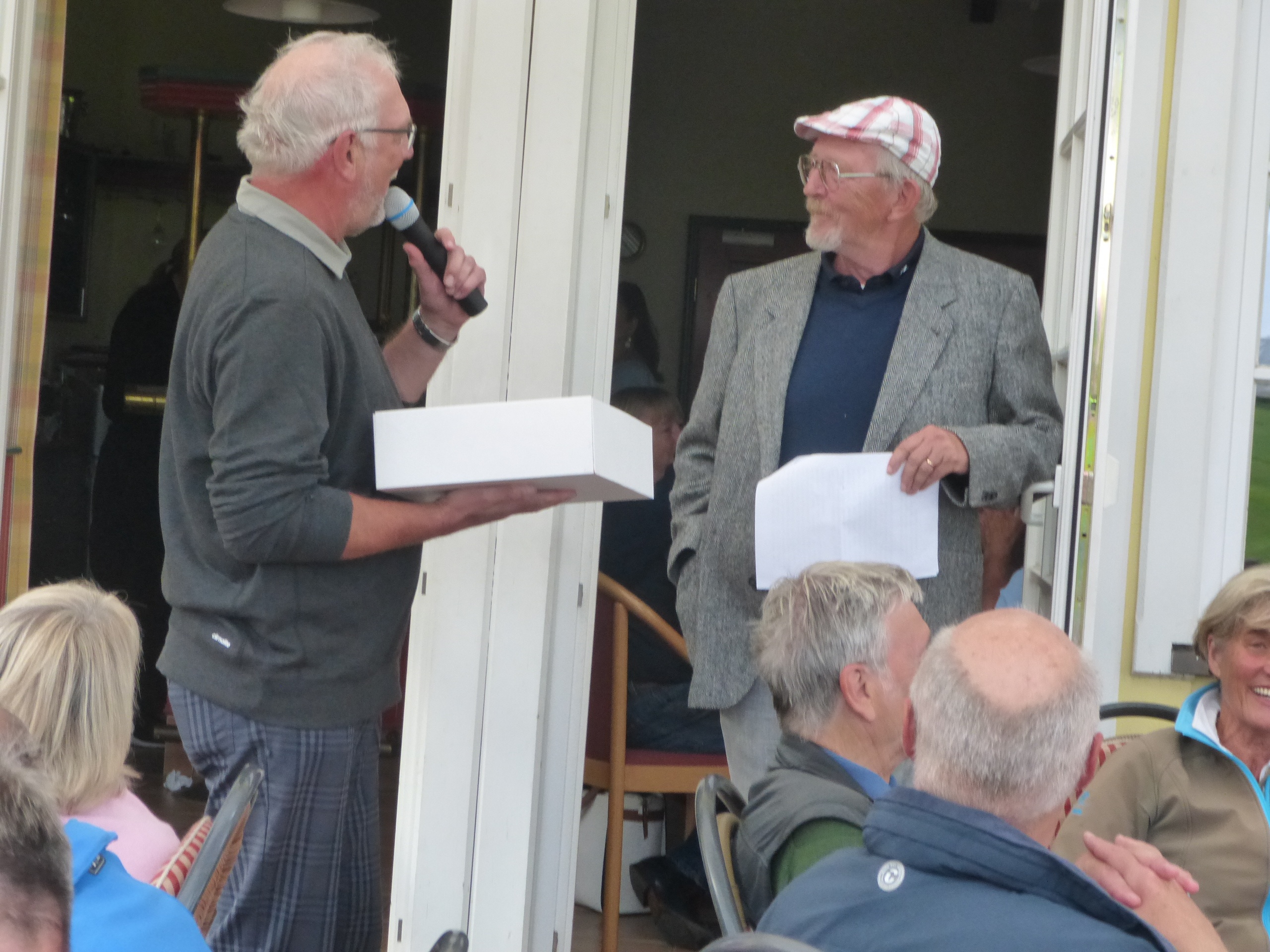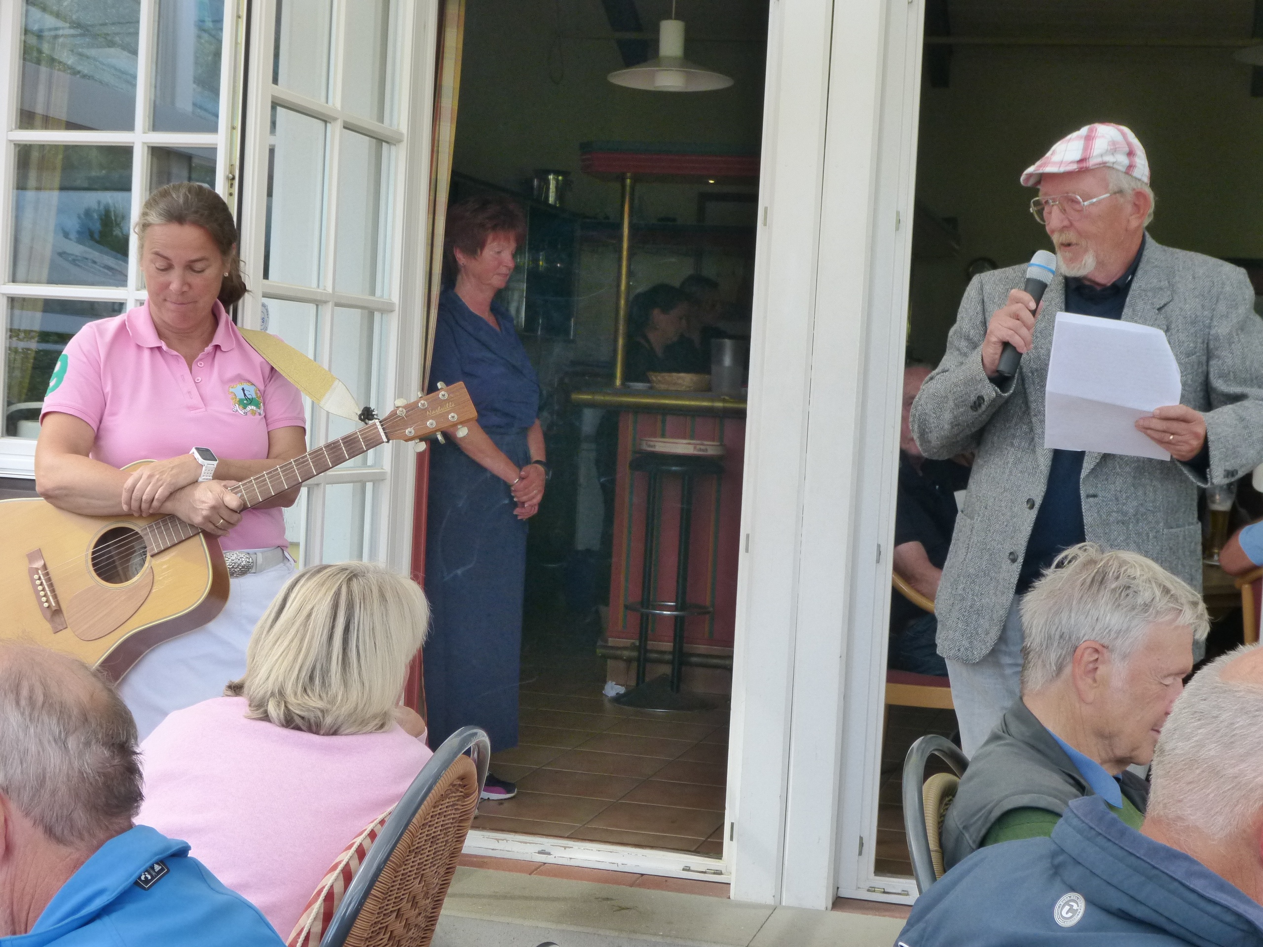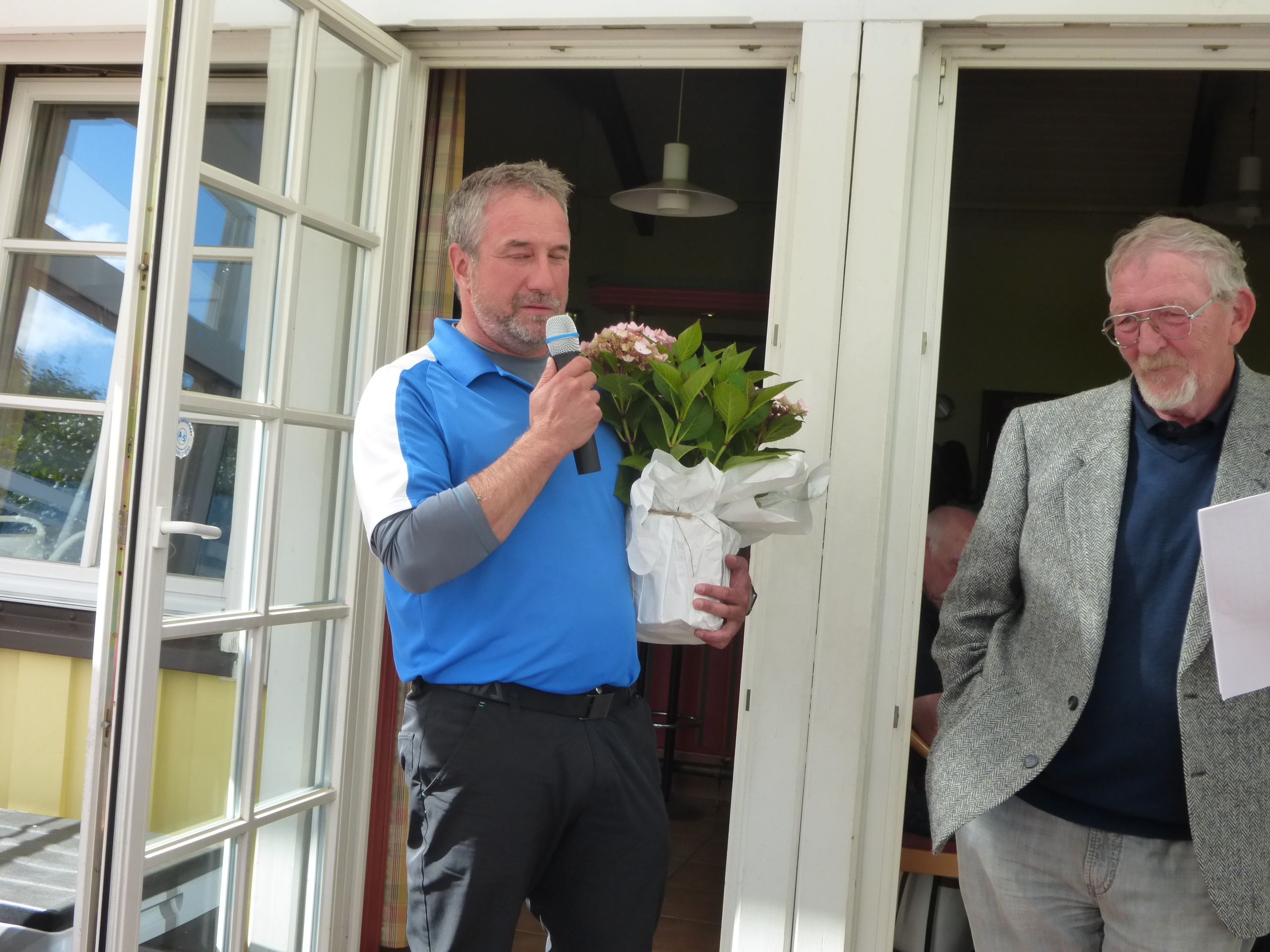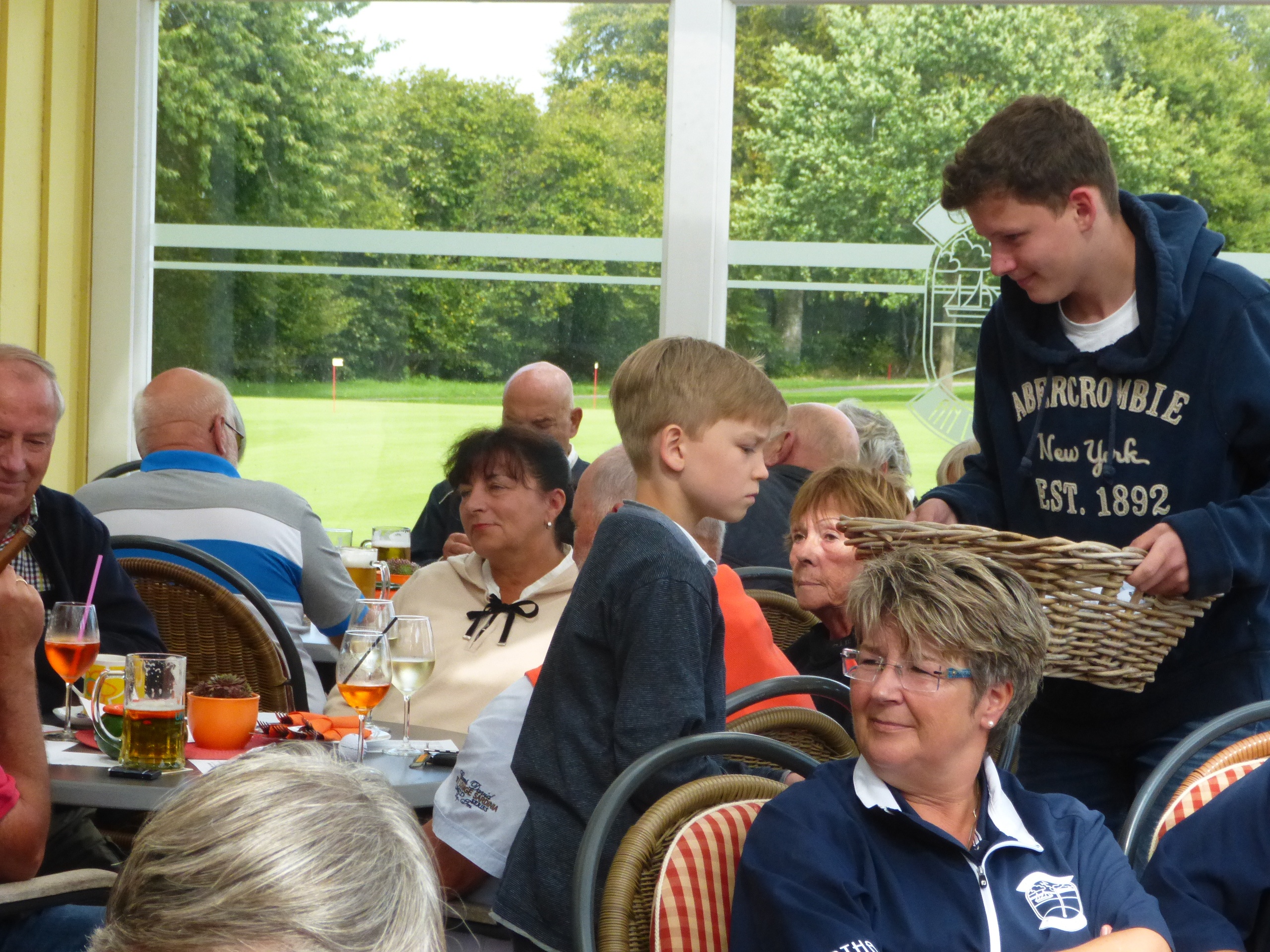 Wenn der Präsident ruft, und das zum 10. Mal, ist die Anmeldeliste schnell gefüllt. Nur mit dem Wettergott stand er in diesem Jahr nicht auf einem guten Fuß. Drei kurze und heftige Regengüsse, die zum nass werden reichten, gingen auf die Spieler nieder. Die allerdings ließen sich die Laune nicht verderben. Wurde doch ein Texasscramble zu viert gespielt und das mit Partnern, die man sich aussuchen konnte. Solche Turniere spielt man dann doch gerne. Fröhlich, mit guten Ergebnissen kamen die Spieler wieder im Loch 19 an, wo schon das leckere Essen, das Gudrun Raschke mit ihrem Team servierten, wartete.
