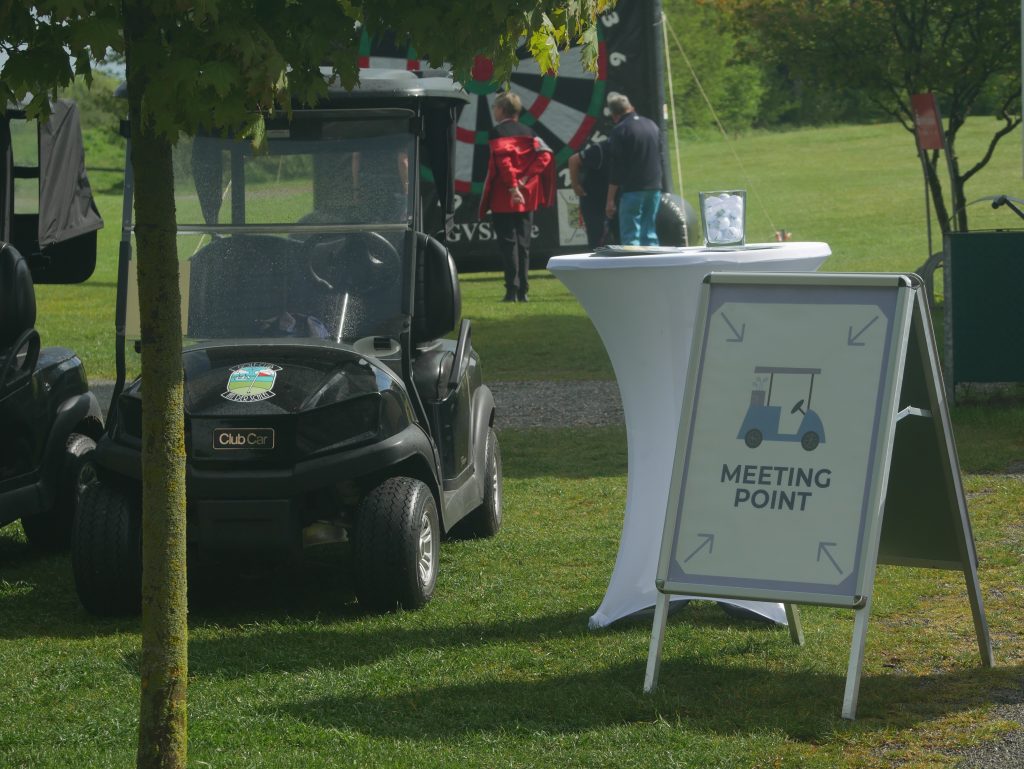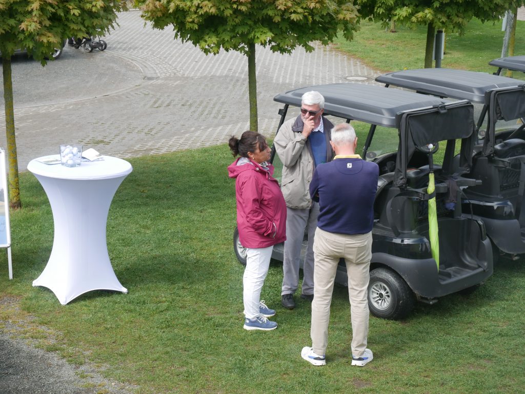 Für eine Inspektion des Golfplatzes standen Golfcarts bereit. Helfer und Gäste drehten so eine Runde über die Anlage und konnten sich ein richtiges Bild von einem Golfplatz machen.