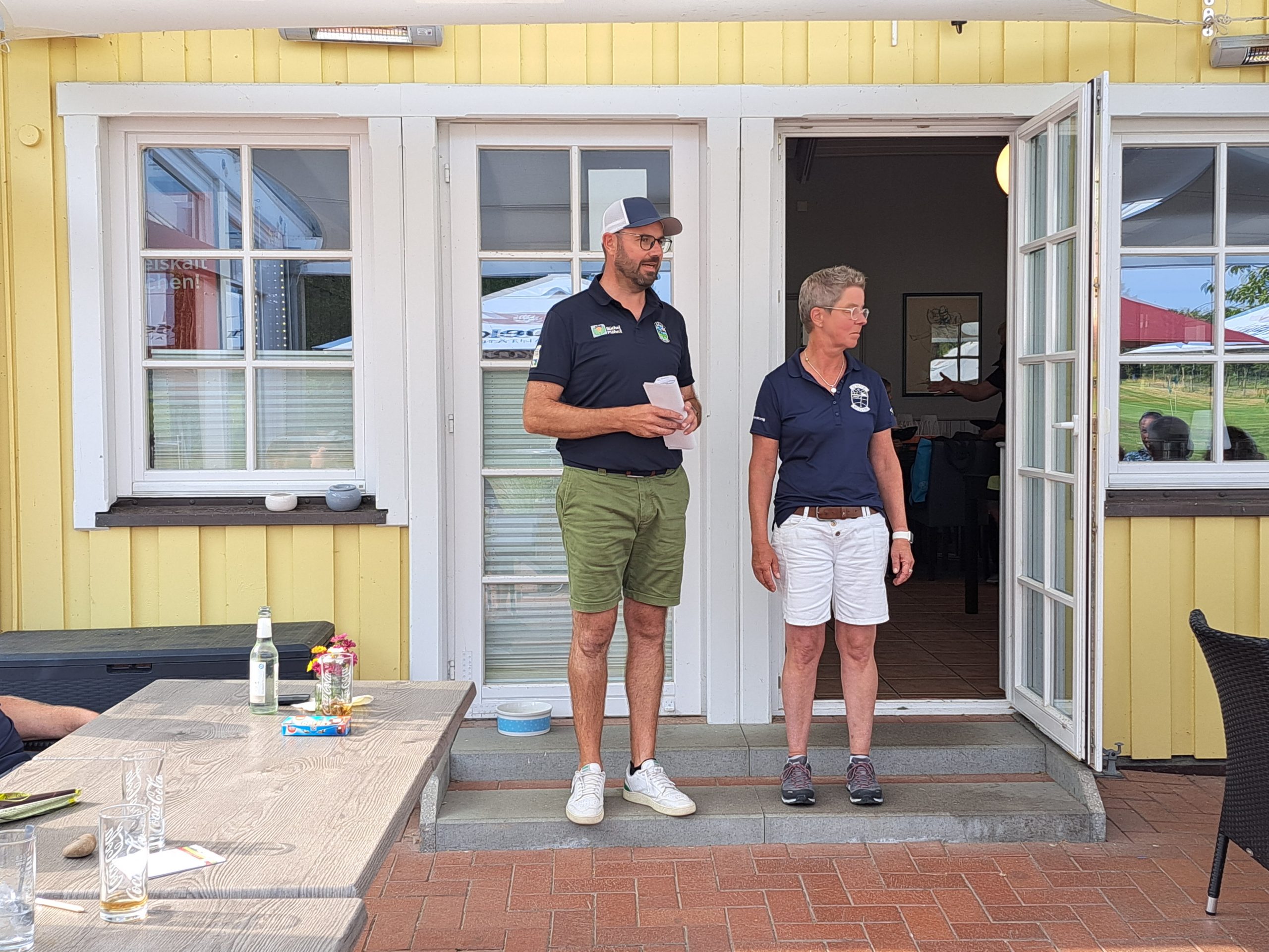 Aber nun zum vergnüglichen Teil. Stephanie Zilch, Mette Jensen und Thomas Jensen stellten trotzdem ein tolles Turnier auf die Beine. Vor dem Clubhaus hatten sie eine Snackbar mit Kuchen, Süßigkeiten und Wasser aufgebaut. Gegen eine kleine Spende könnten sich hier die Spieler und Spielerinnen für die Runde noch stärken oder mit Nervennahrung versorgen. Auch eine mobile Versorgungsstation war eingerichtet. Ein Cart mit allem was gebraucht wurde, war auf der Anlage unterwegs.
