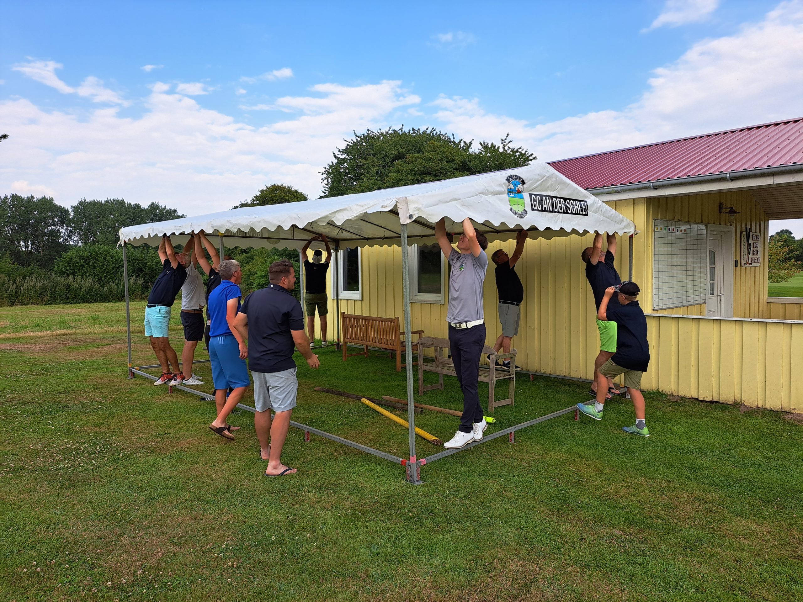 Bevor sich die Runde auflöste, rief Präsident Reusch alle Männer der Runde dazu auf, beim Aufbau des Zeltes für die in der nächsten Woche stattfindende Jugendgolfwoche zu helfen. Mit vereinten Kräften war das auch schnell erledigt.