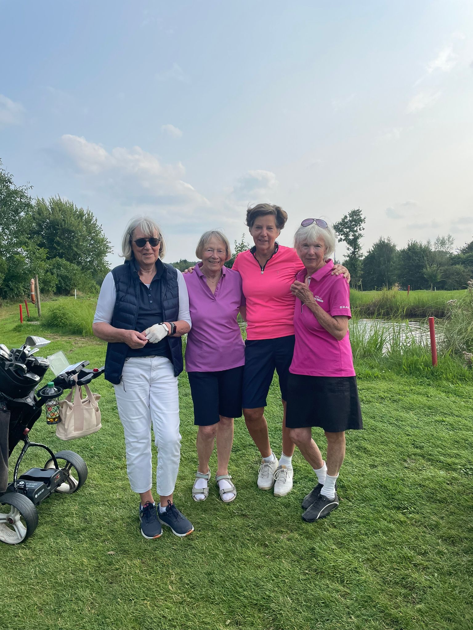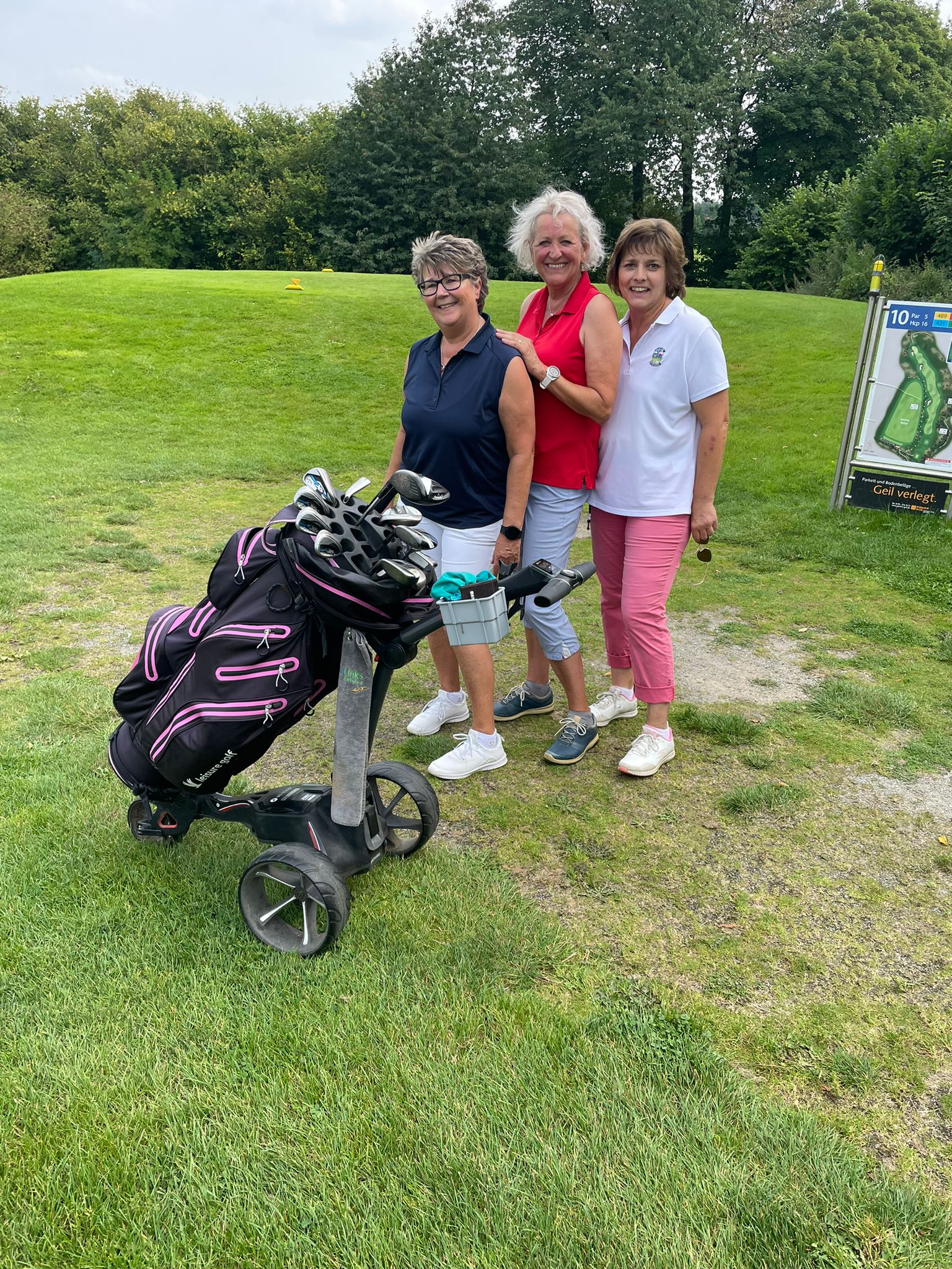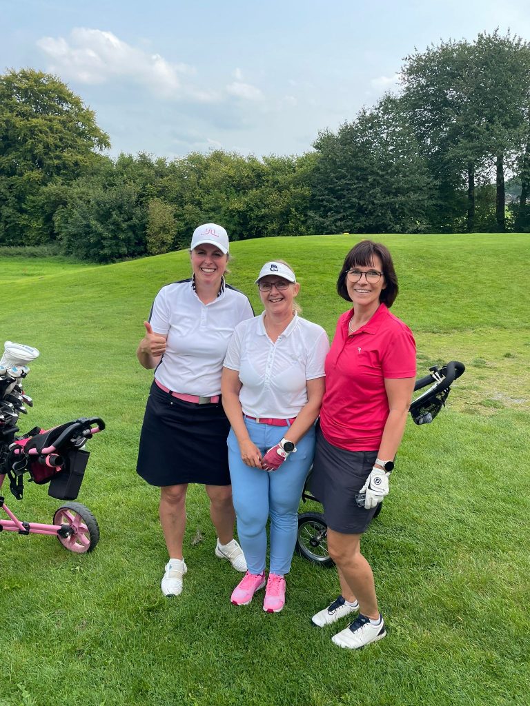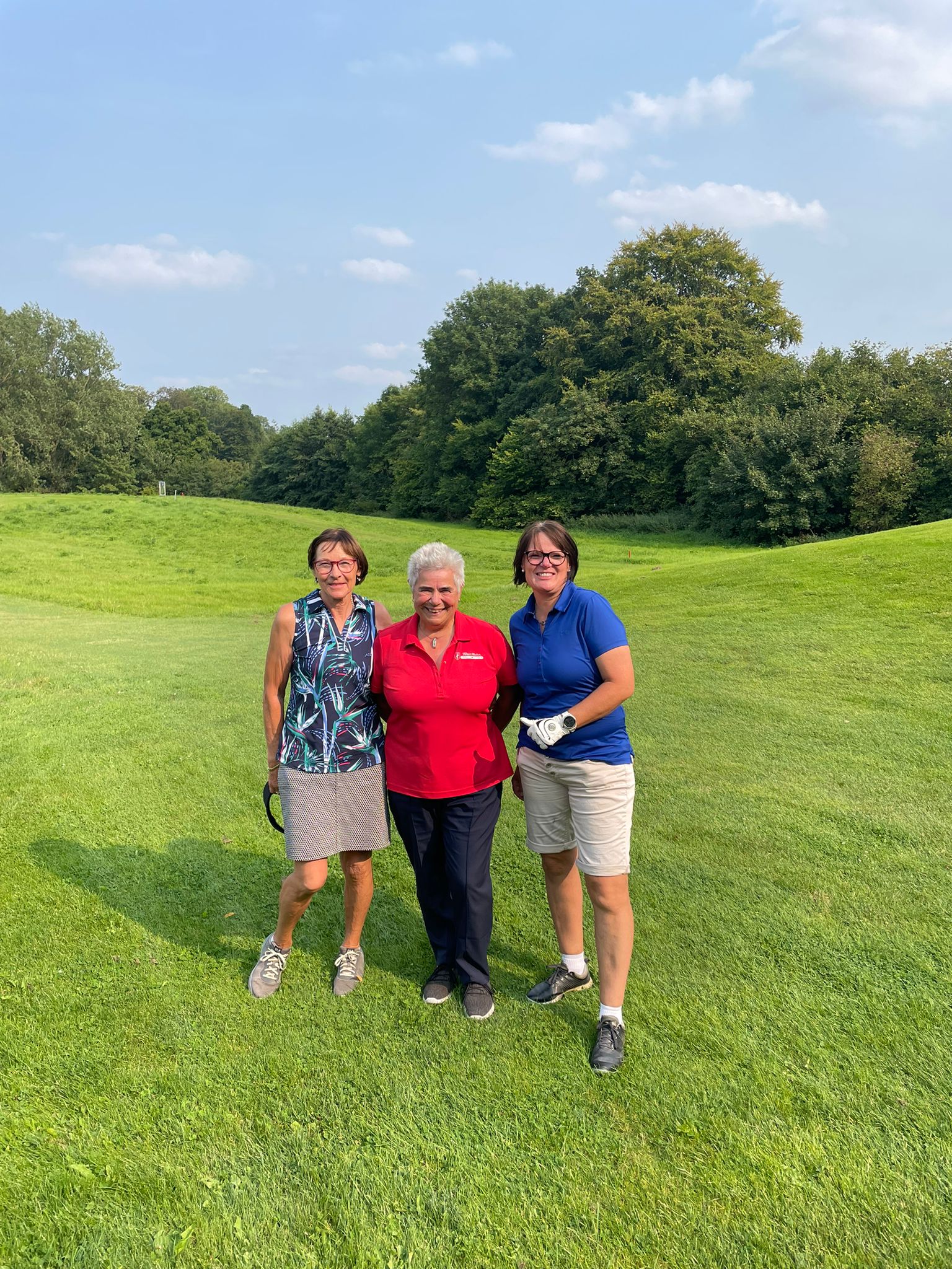Um 13 Uhr startete dann der sportliche Teil des Tages: 18 anspruchsvolle Löcher lagen vor den Damen, die sich bei strahlendem Sonnenschein und hohen Temperaturen den Herausforderungen des Golfplatzes stellten. Die Hitze stellte zusätzliche Anforderungen an die Kondition und Konzentration der Spielerinnen. Doch die Organisatorin hatte auch hier vorgesorgt: An Tee 10 wartete Wilma Schwarz gemeinsam mit Barbara Marek auf die Teilnehmerinnen und bot eine liebevoll gestaltete Halfway-Verpflegung an. Selbst gebackener Kuchen, frischer Kaffee und Dooleys-Likör sorgten für die nötige Stärkung und versüßten den Damen den Übergang in die zweite Turnierhälfte.