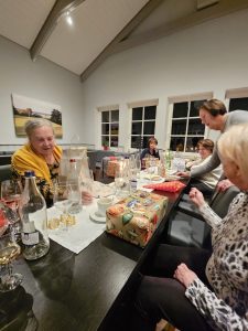 Nach dem Essen begann der beliebte Programmpunkt des Abends: das traditionelle Schrottklapp-Wichteln. Die Ladies hatten ihre Geschenke kreativ und ansprechend verpackt, sodass die Spannung groß war. Zunächst hieß es: Bei einer gewürfelten 1 oder 6 durfte ein Paket vom Gabentisch geholt werden – und in kurzer Zeit waren alle Geschenke verteilt.