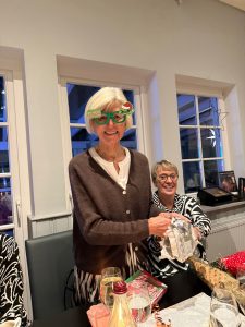 Dann startete der turbulente Teil: Bei einer 1 musste ein Paket abgegeben, bei einer 6 durfte eines stibitzt werden. Die nächsten 30 Minuten waren geprägt von Gelächter, Gezanke im besten Sinne und viel guter Laune. Besonders Sabine Damm hatte Fortuna auf ihrer Seite: Mit unglaublichen elf Paketen erzielte sie den Rekord des Abends. Beim späteren Auspacken zeigte sich, wie vielseitig „Schrott“ sein kann – von Sonnenhut über Kaffeebecher bis hin zur Luftmatratze war alles dabei.