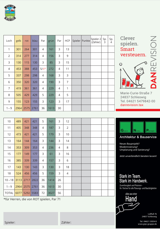 Scorekarte & Spielvorgabe